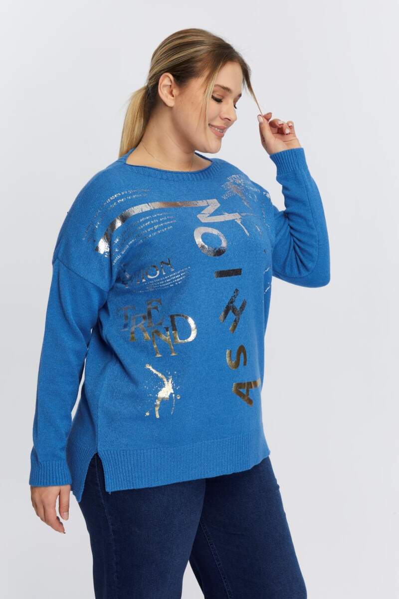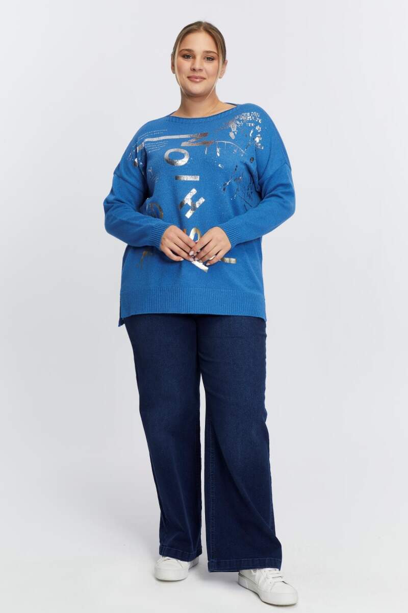 Büyük Beden Kayık Yaka Kaşmir Karışımlı Baskılı Triko, indigo renginin eşsiz şıklığıyla göz alıcı bir stil sunuyor. Kayık yaka tasarımı, zarif bir görünüm sağlarken kaşmir karışımlı dokusuyla hem yumuşak hem de sıcak tutan bir deneyim sunar. Modern baskı detaylarıyla öne çıkın!