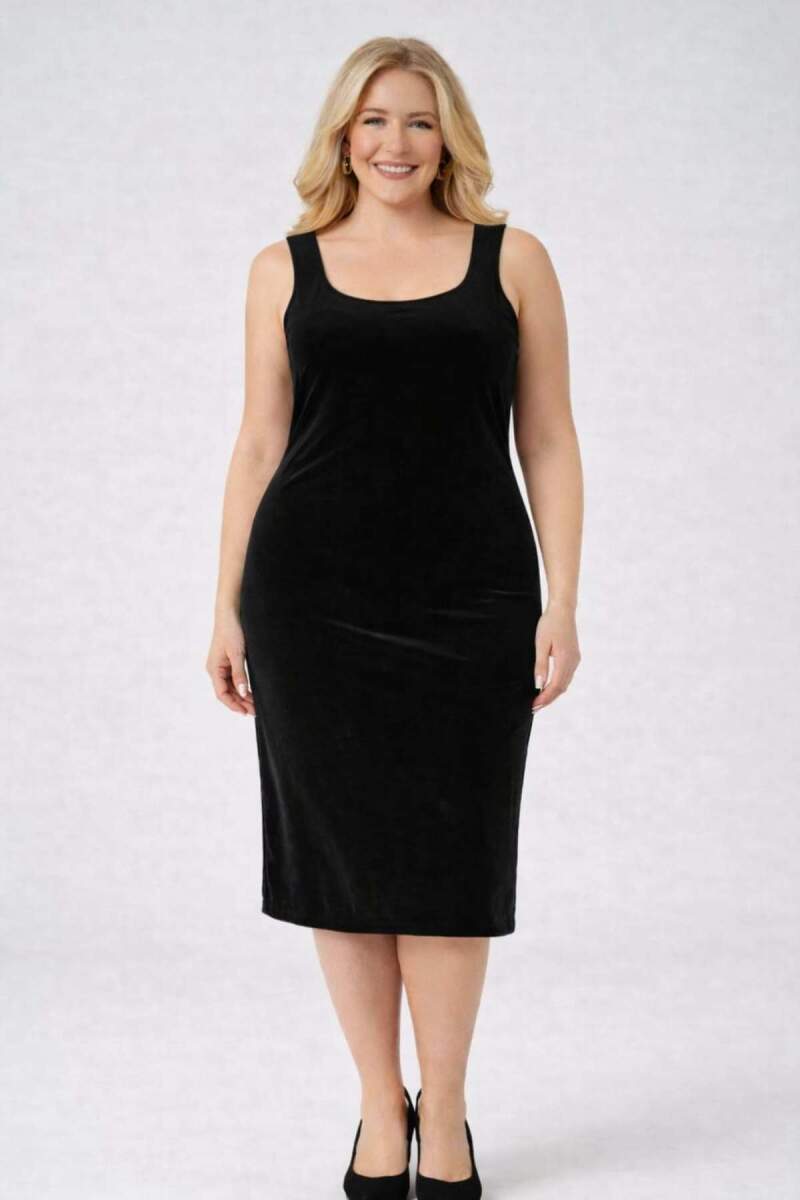 Kısa midi boy elbise tasarımı sayesinde hem modern hem zarif görünüm sunar.