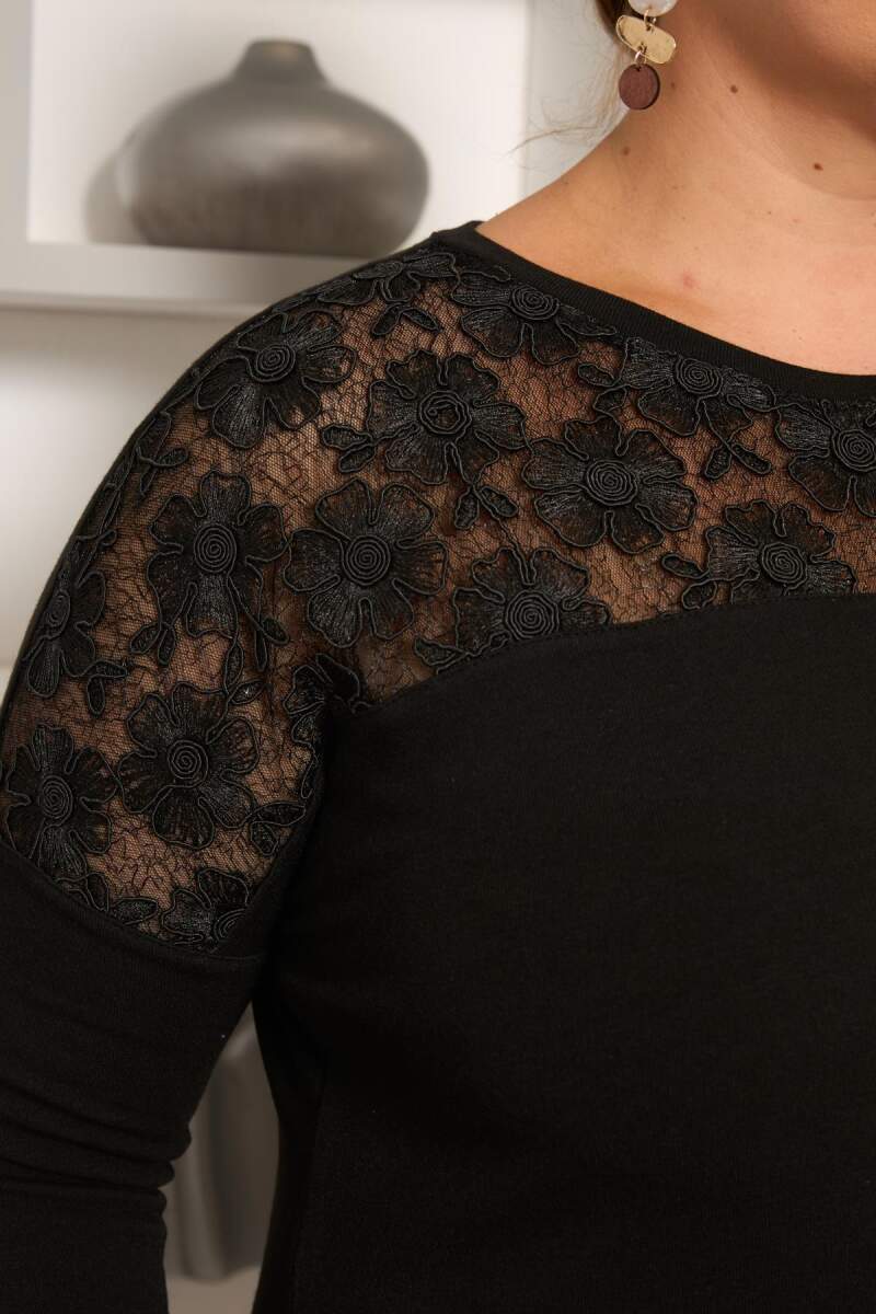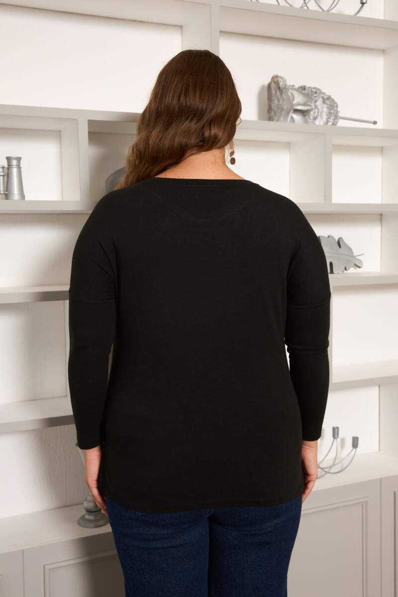 Büyük Beden Kordone Dantel Garnili Bluz Siyah