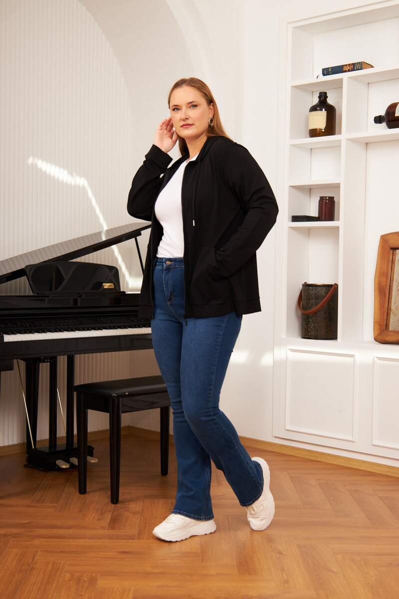 Büyük Beden Modal Sweatshirt Hırka Siyah