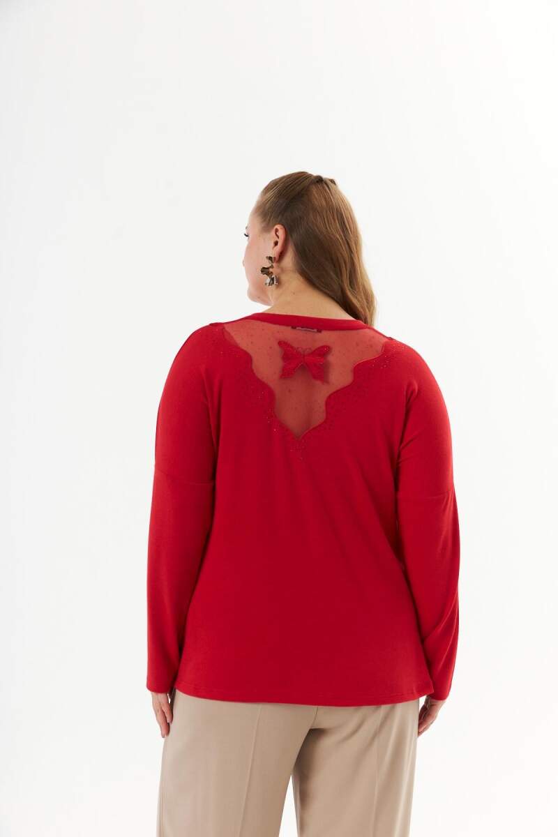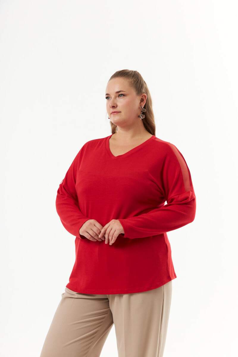 Büyük beden Omuz ve Sırt Taş Detay Örme Bluz Kırmızı