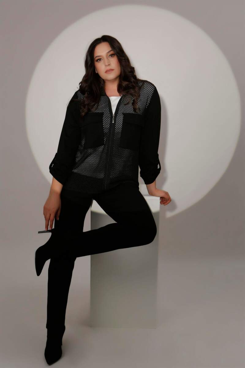 Muhteşem file ve cep detayı ile şık bir görünüm