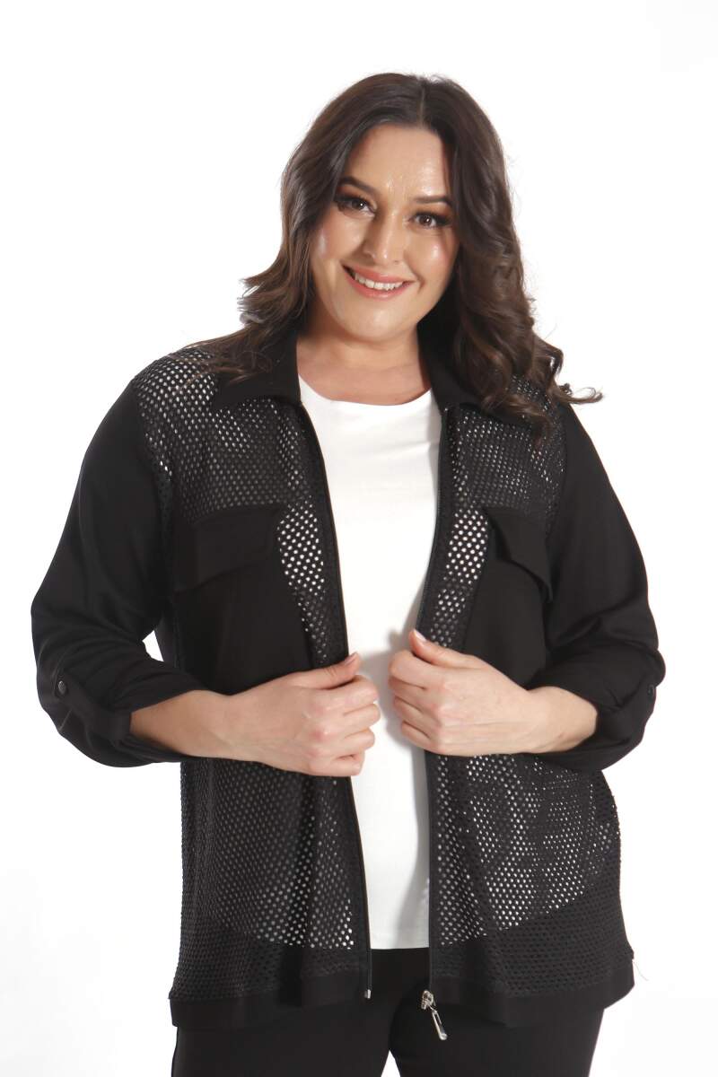 Rahat kalıbı ve file detaylı kumaşı ile dikkatler üzerinizde