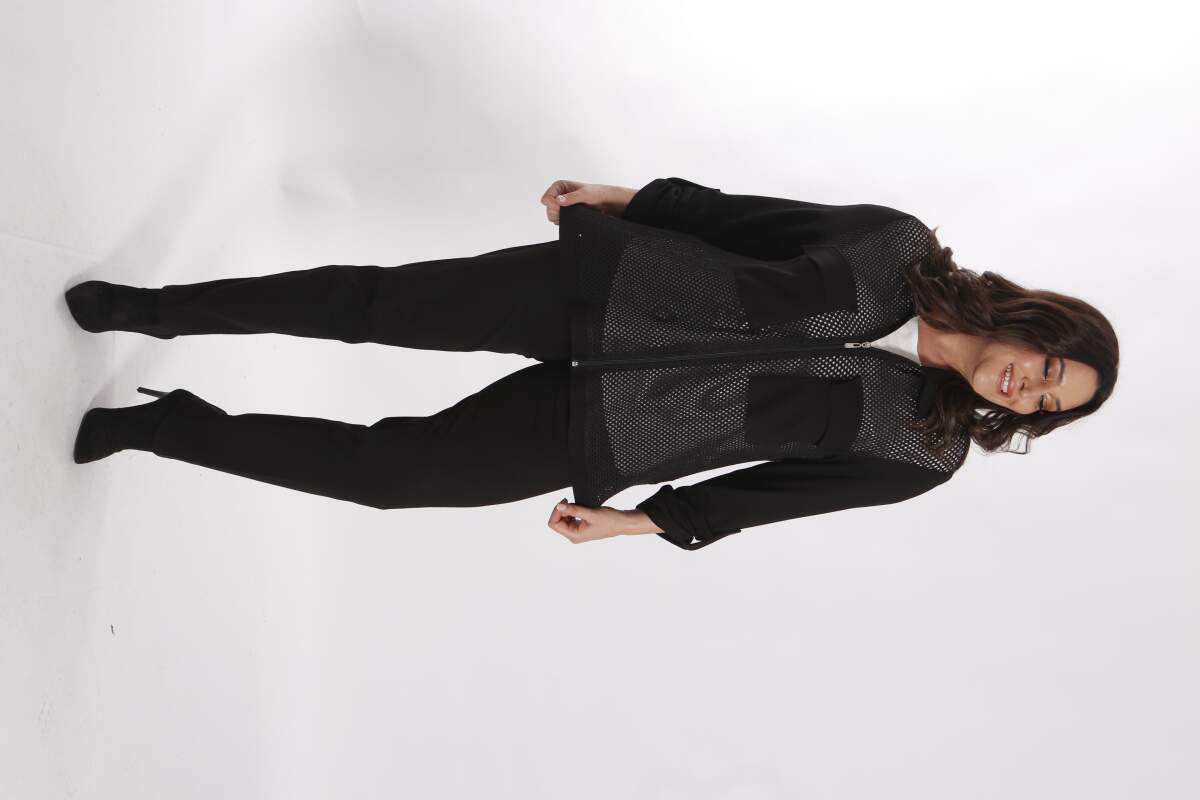 Angelino Büyük Beden Ön Fileli Siyah İkili Takım , klasik kesimi erkek yaka detayı ve dokusu ile maskülen tavrı vurgulamanıza yardımcı oluyor. Takım modelinin taş detaylı ile çarpıcı bir görünüm yaratıyor.