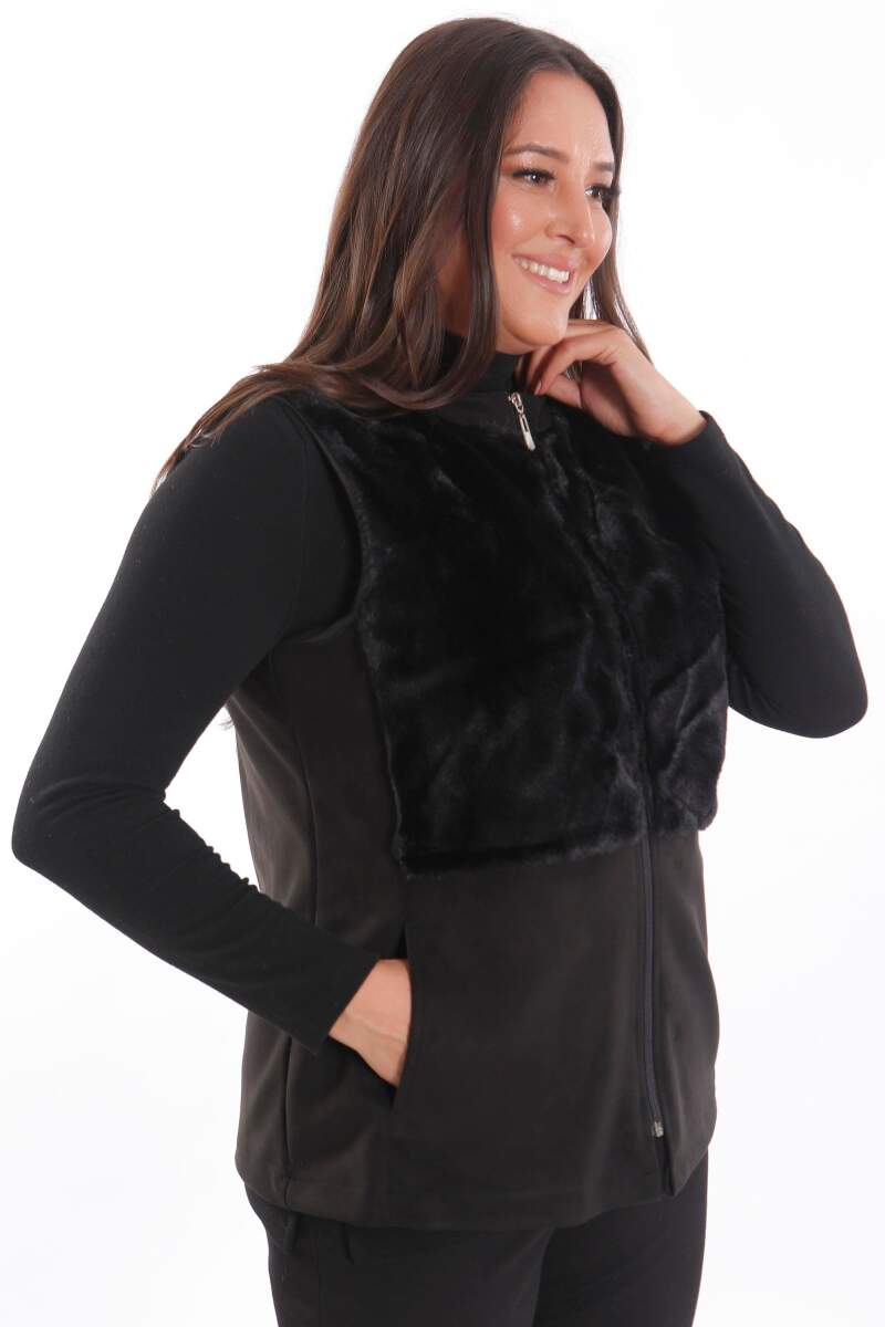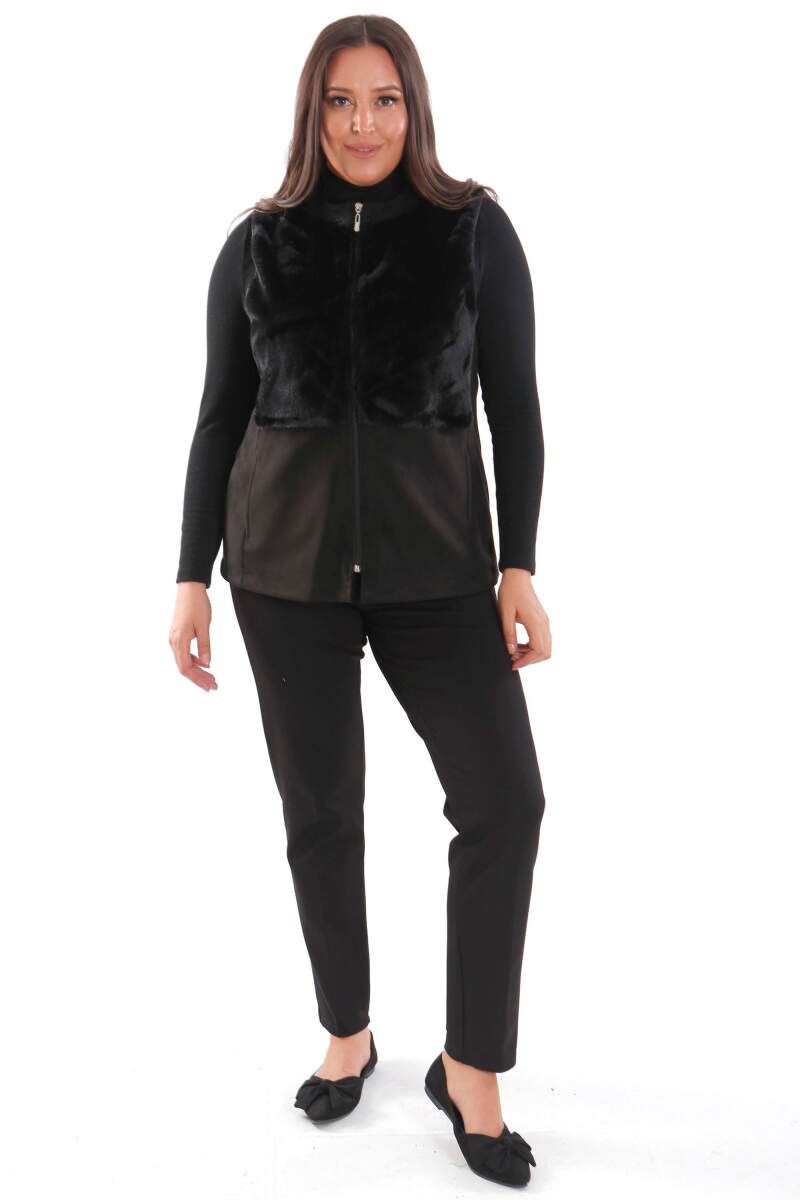 Büyük Beden Ön Kürk Detaylı Fermuarlı Siyah Yelek modeli; hoş, yumuşak dokusu ile soğuk havalarda bile şıklığın mümkün olabildiğini, muhteşem görüntüsüyle sizlere kanıtlıyor. Ön kürk detaylı yelek modeli; yaka duruşu, rahat kesimi ve önünde bulunan fermuarı ile sizleri ileri seviye şıklığa davet ediyor.
