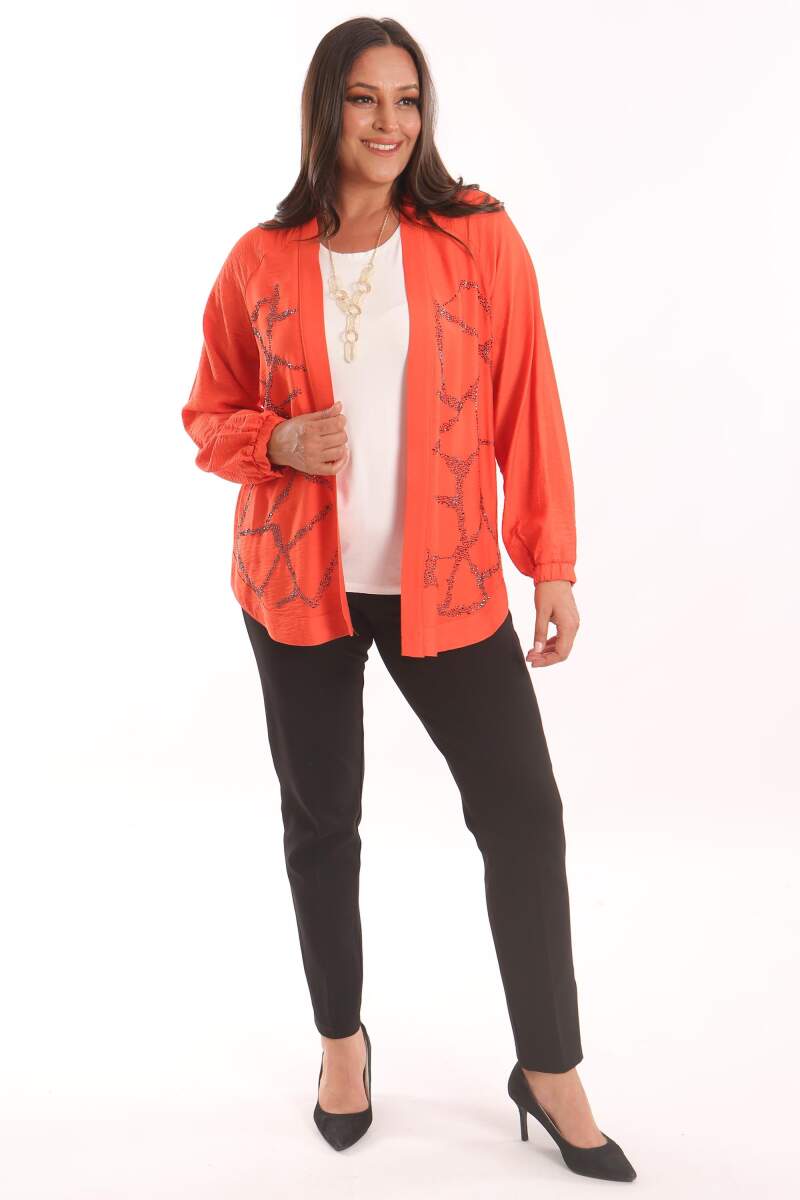 Angelino Büyük Beden Ön Taş Baskılı Oranj Ceket, klasik kesimi yuvarlak yaka detayı ve dokusu ile maskülen tavrı vurgulamanıza yardımcı oluyor. Ceket modelinin ön taş detayı çarpıcı bir görünüm yaratıyor.
