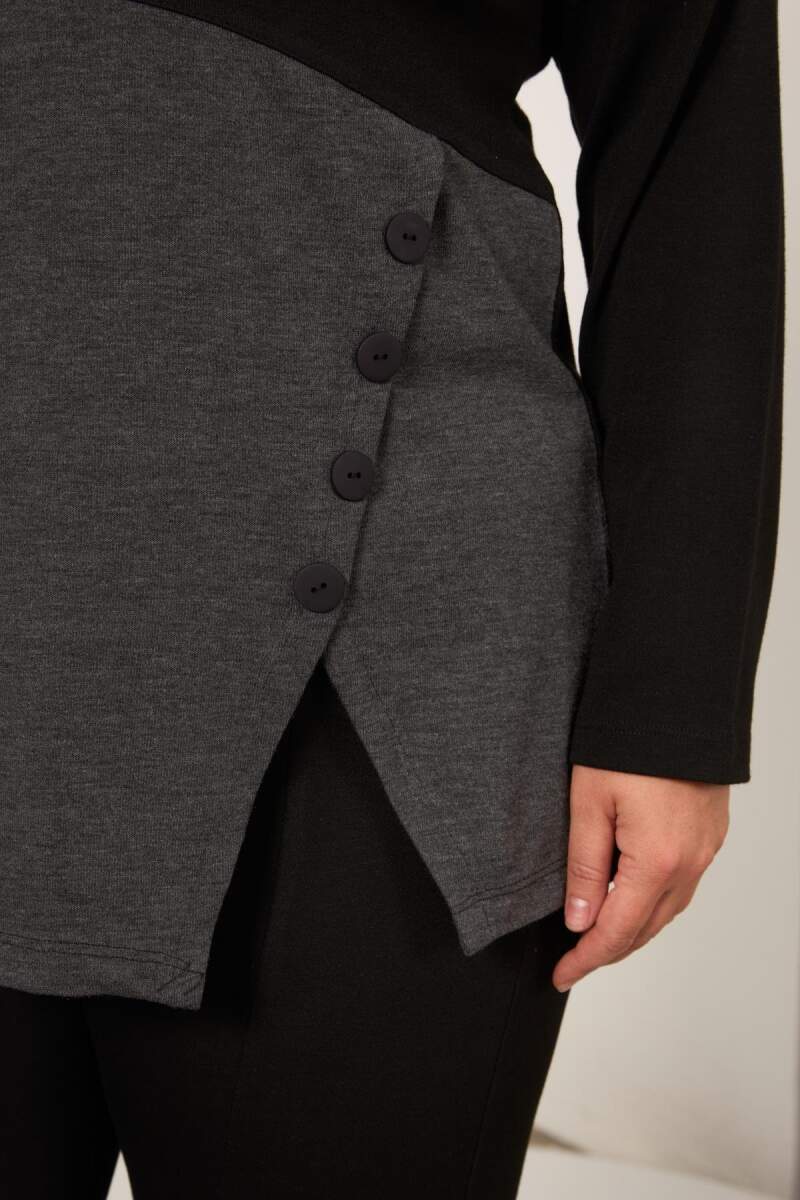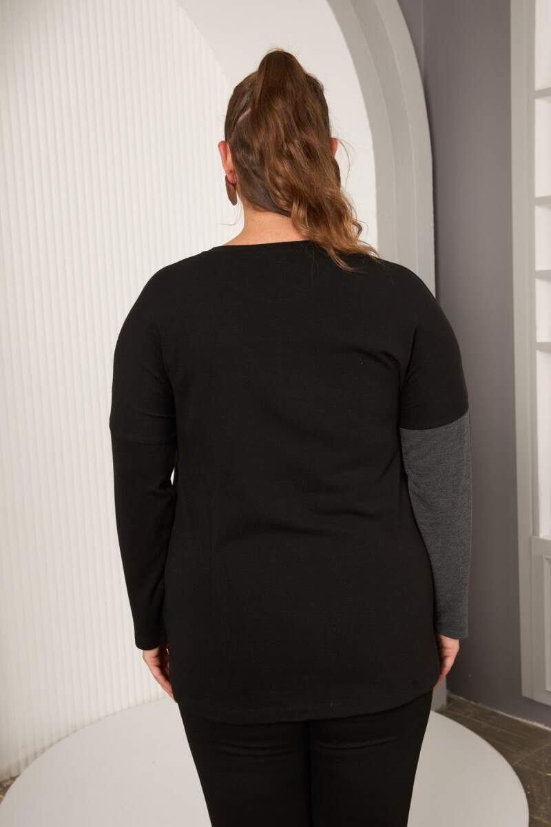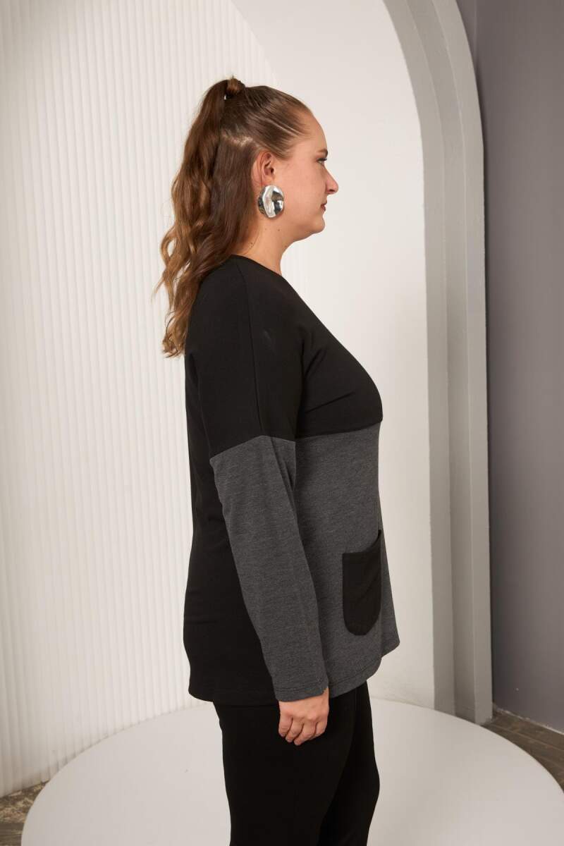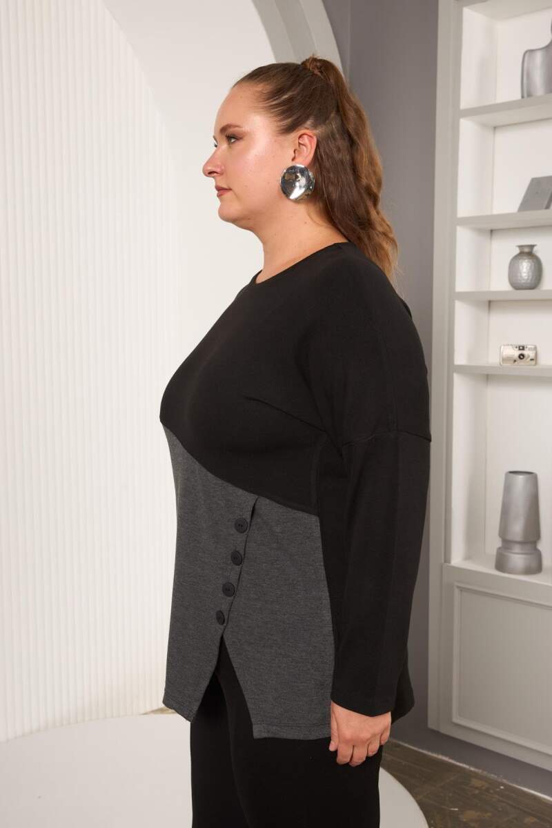 Büyük Beden Önü Düğme ve Cep Detay Bluz Siyah