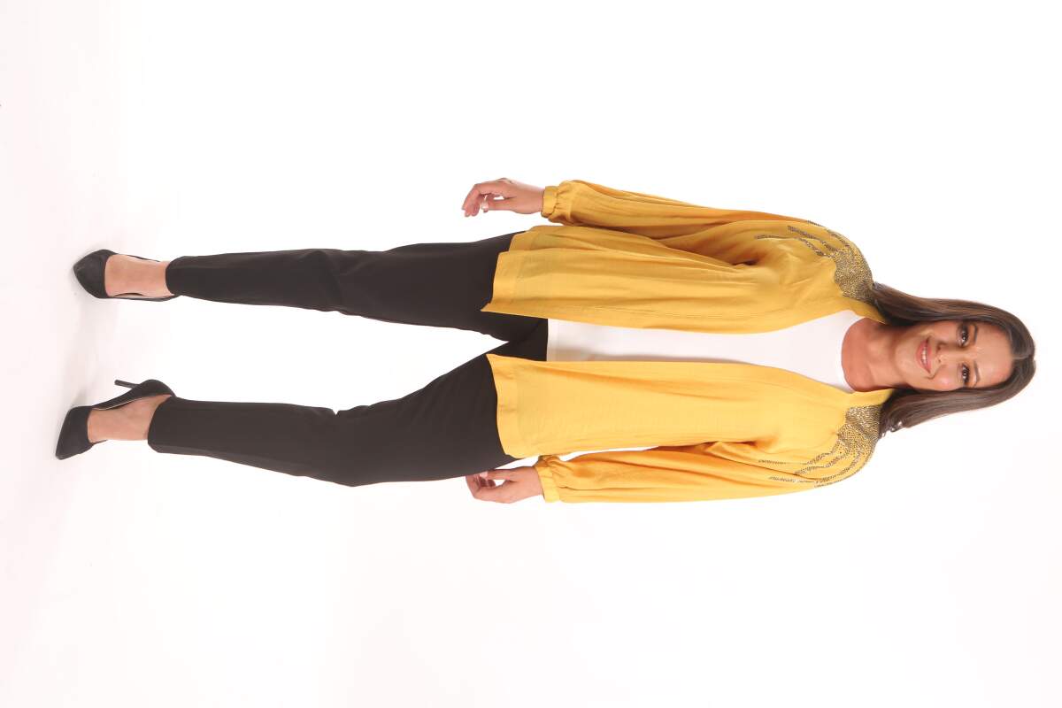 Angelino Büyük Beden Robası Taş Baskılı Oversize Sarı Ceket, klasik kesimi yuvarlak yaka detayı ve dokusu ile maskülen tavrı vurgulamanıza yardımcı oluyor. Ceket modelinin ön taş detayı çarpıcı bir görünüm yaratıyor.