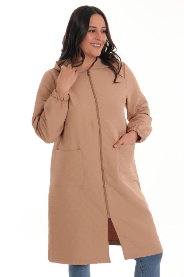Angelino Büyük Beden Soğan Desen Fermuarlı Bej Kap