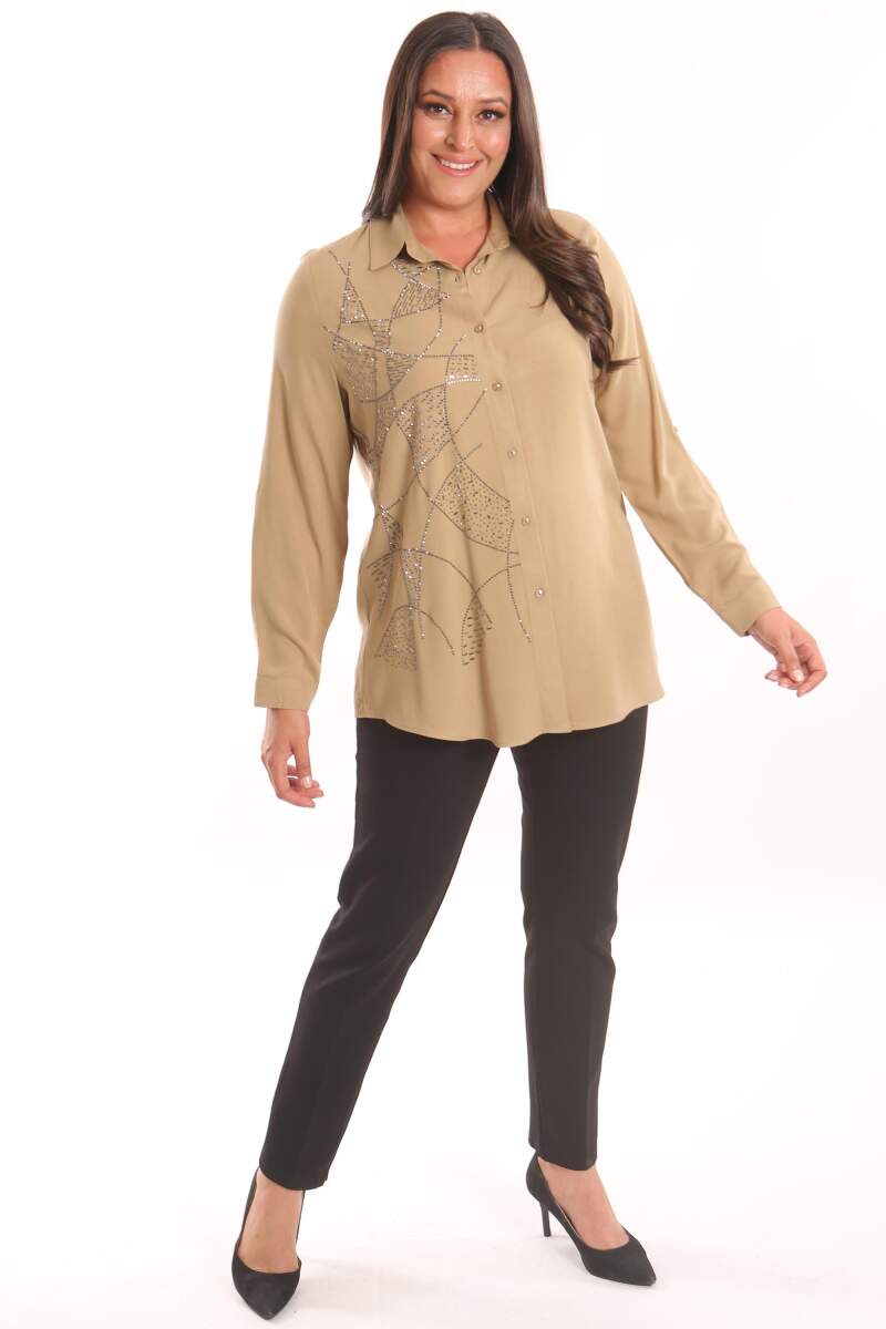 Büyük Beden Taş Baskı Detaylı Dokuma Bej Gömlek, bahar ve yaz aylarının bitmeyen enerjisini gömlek ile yakala! Hoş dokusu ve cıvıl cıvıl renkleri ile seni büyüleyecek olan bu parçayı kumaş pantolonlar ile birleştirmek isteyebilirsin. Hafif dokusu ile rahatlığı hissederken en yoğun günlerin bile enerjik geçecek! :)