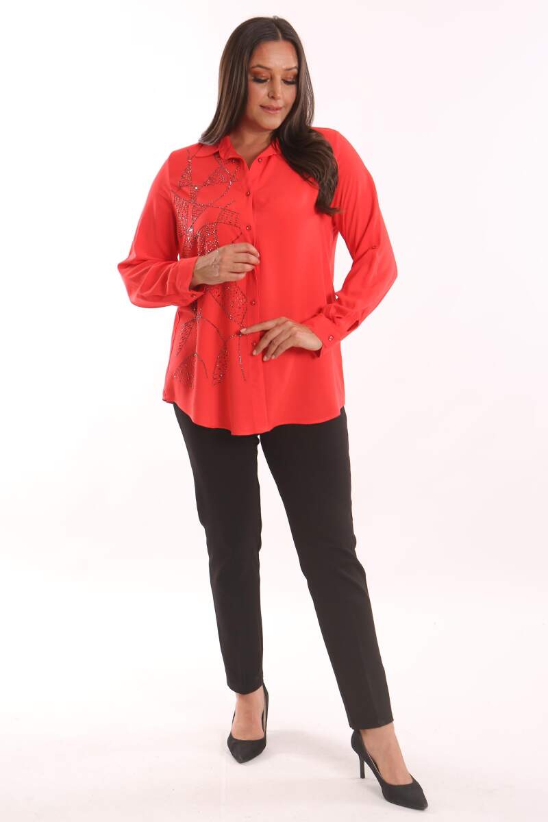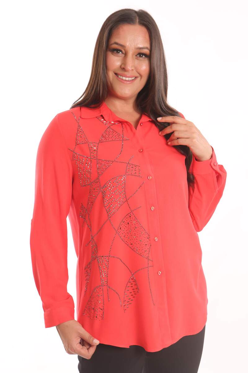 Büyük Beden Taş Baskı  Detaylı Dokuma Coral Gömlek