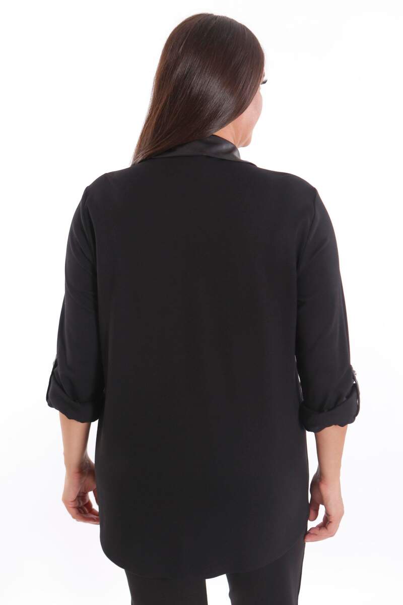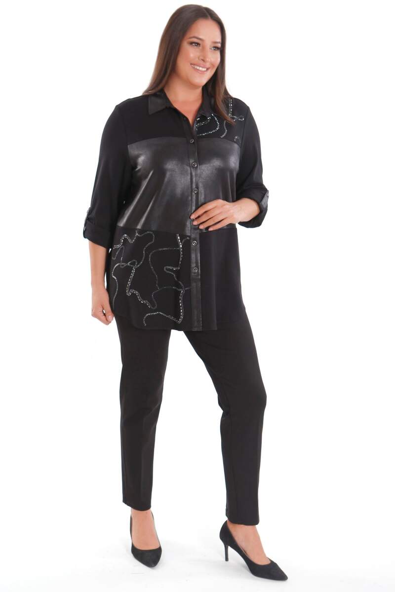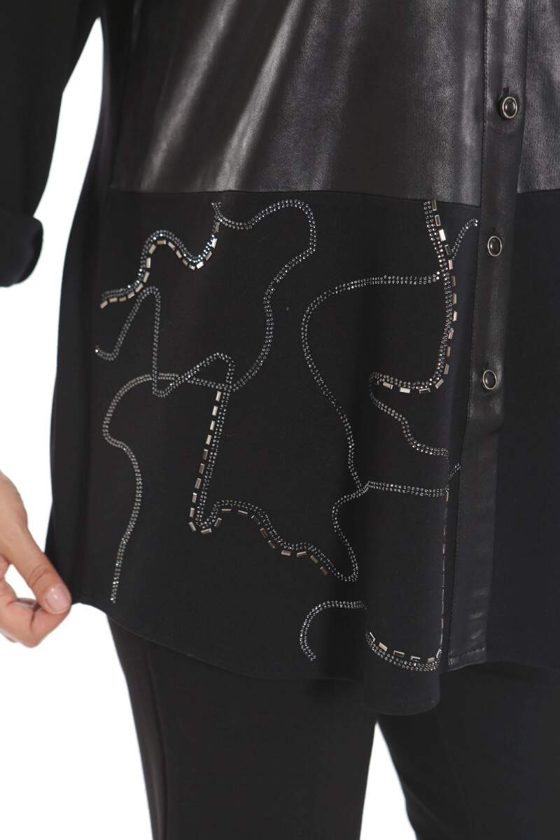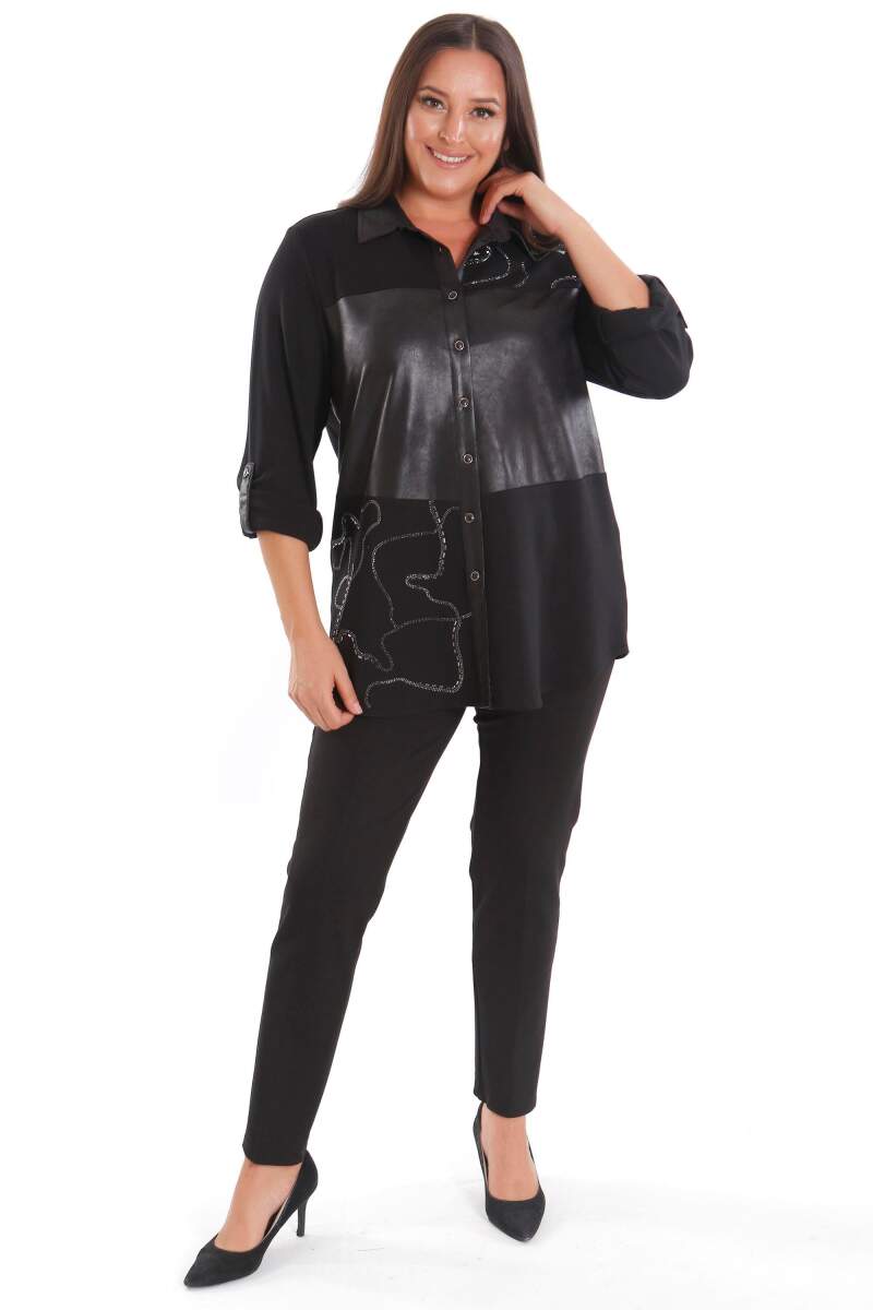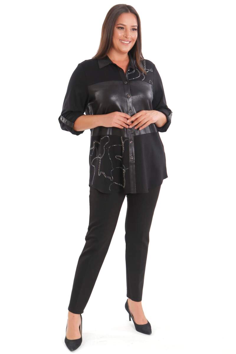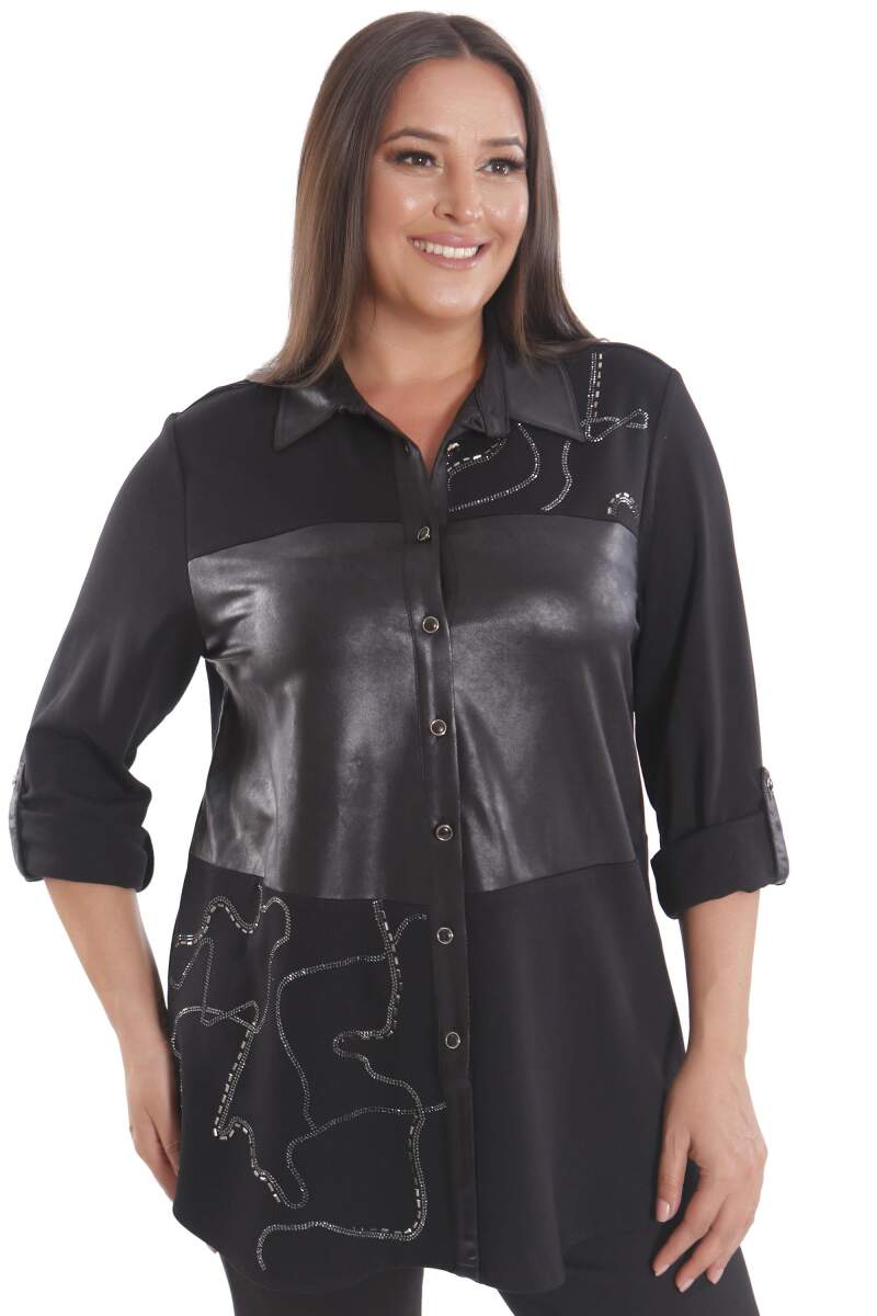 Büyük Beden Taş Baskılı Deri Garnili Siyah Gömlek, sonbahar ve kış aylarının bitmeyen enerjisini gömlek ile yakala! Hoş dokusu ile seni büyüleyecek olan bu parçayı kumaş pantolonlar ile birleştirmek isteyebilirsin. Hafif dokusu ile rahatlığı hissederken en yoğun günlerin bile enerjik geçecek! :)