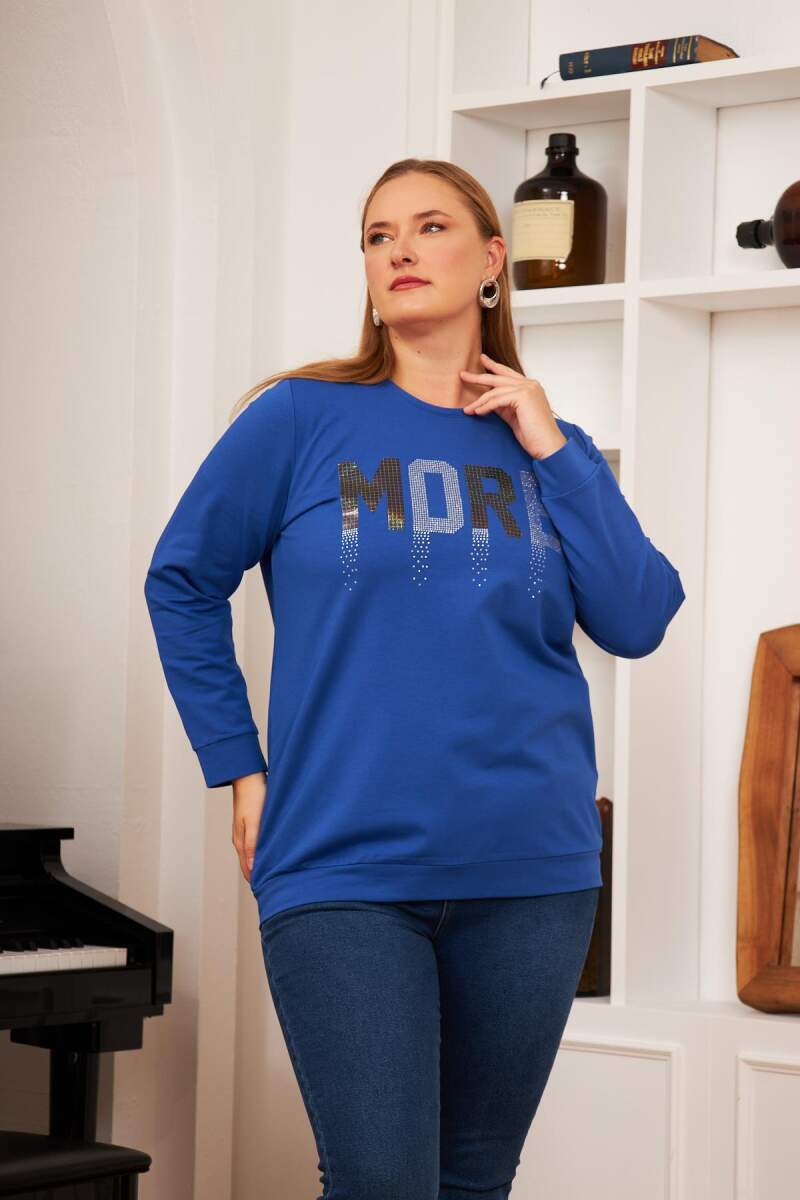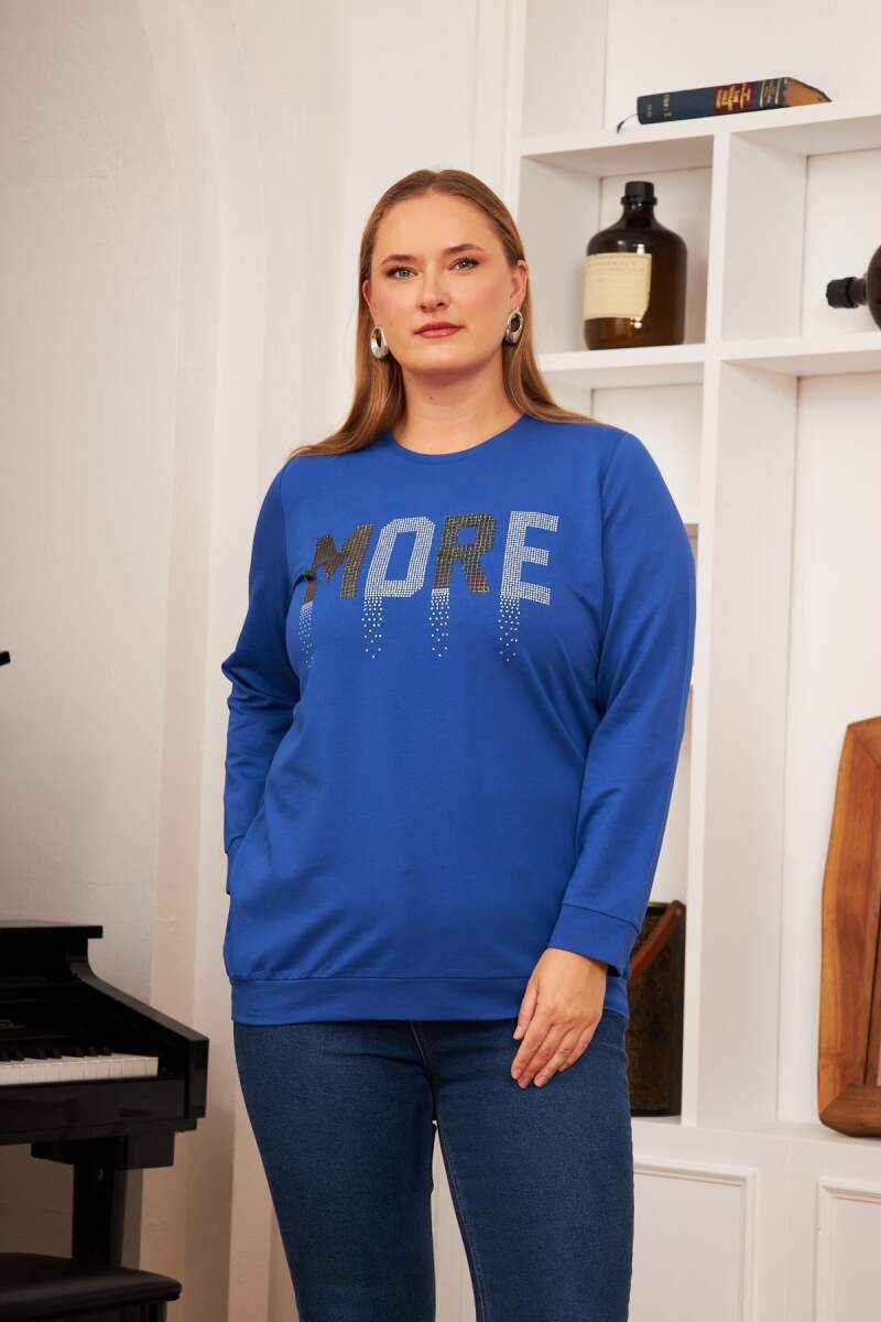Büyük Beden Taş Baskılı Sweatshirt Saks.