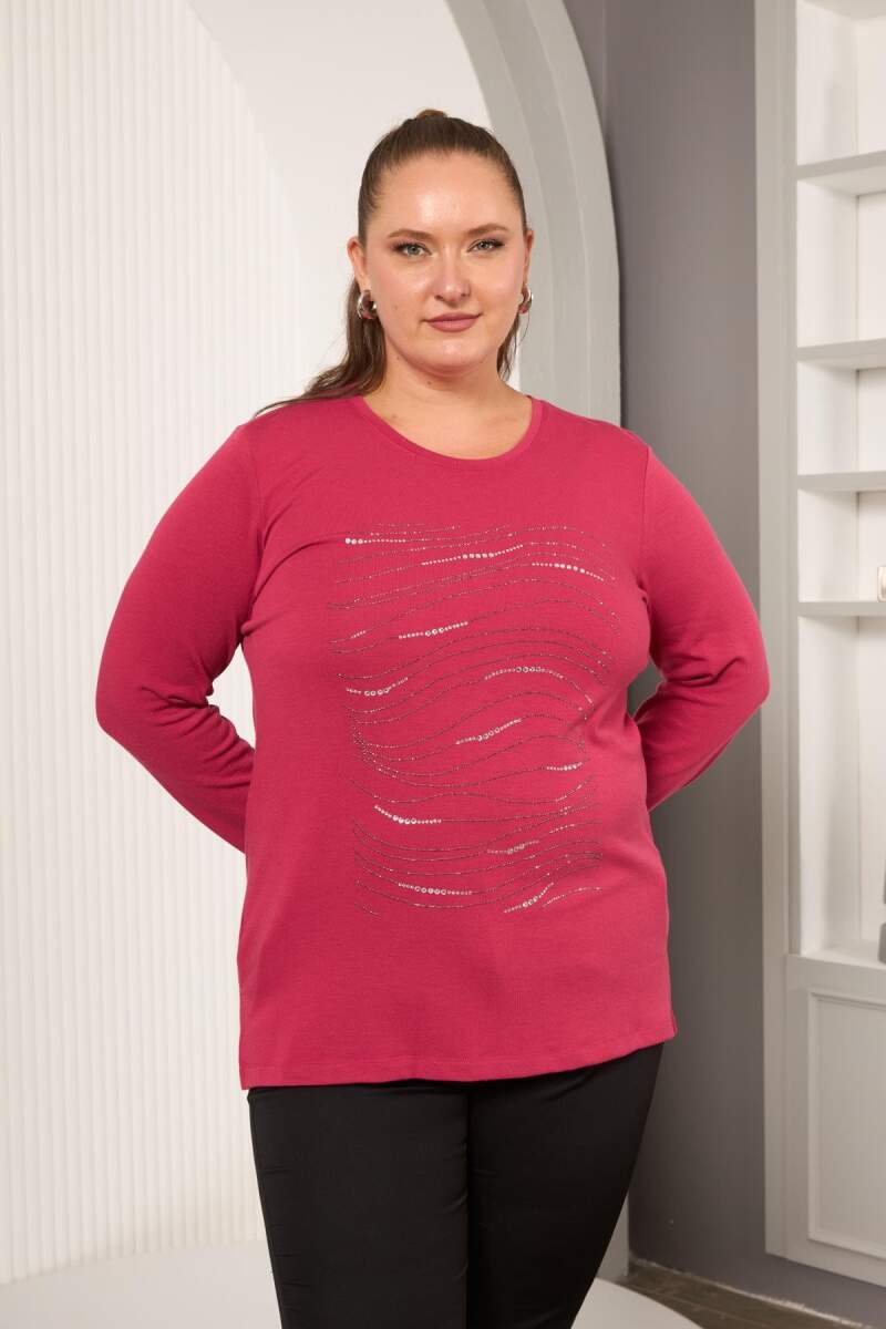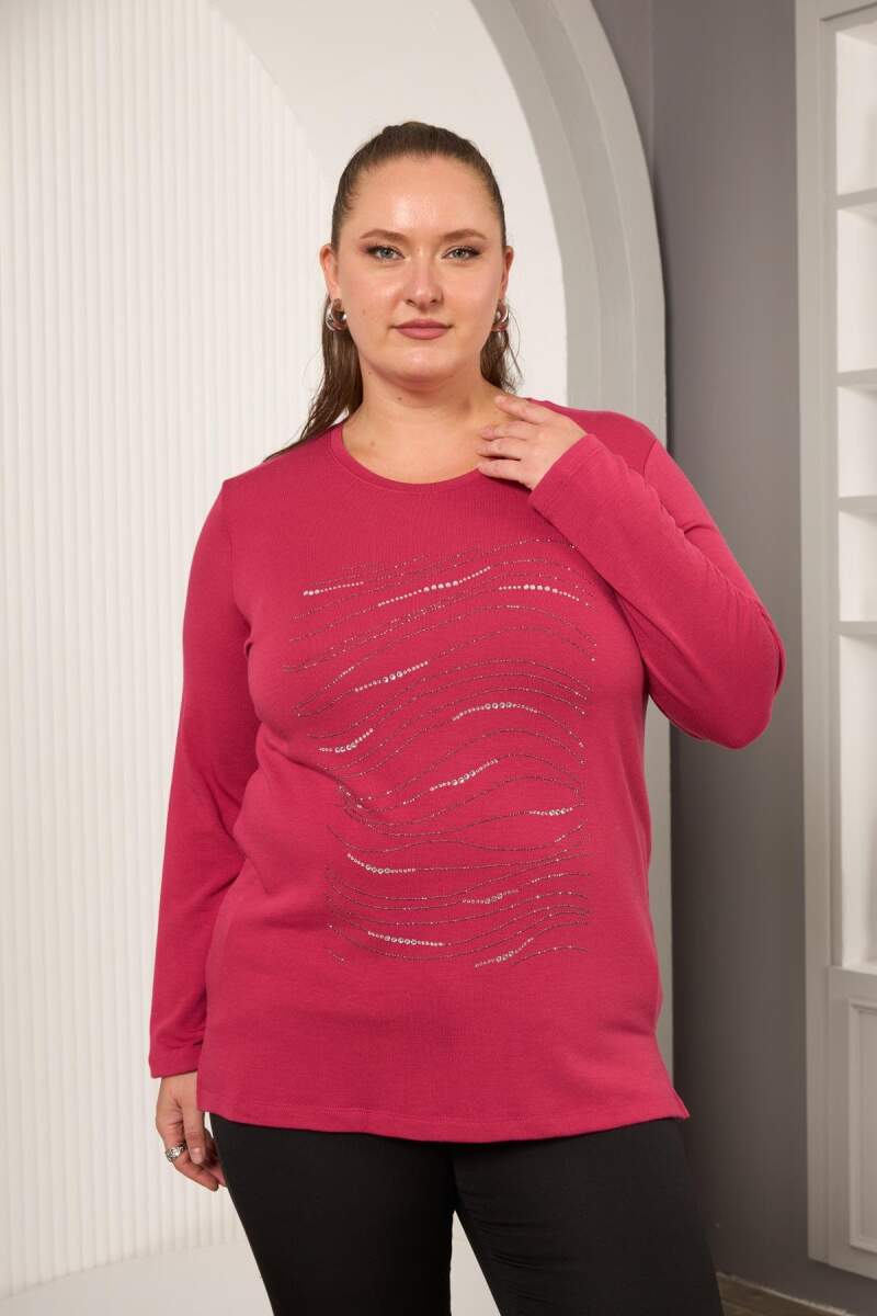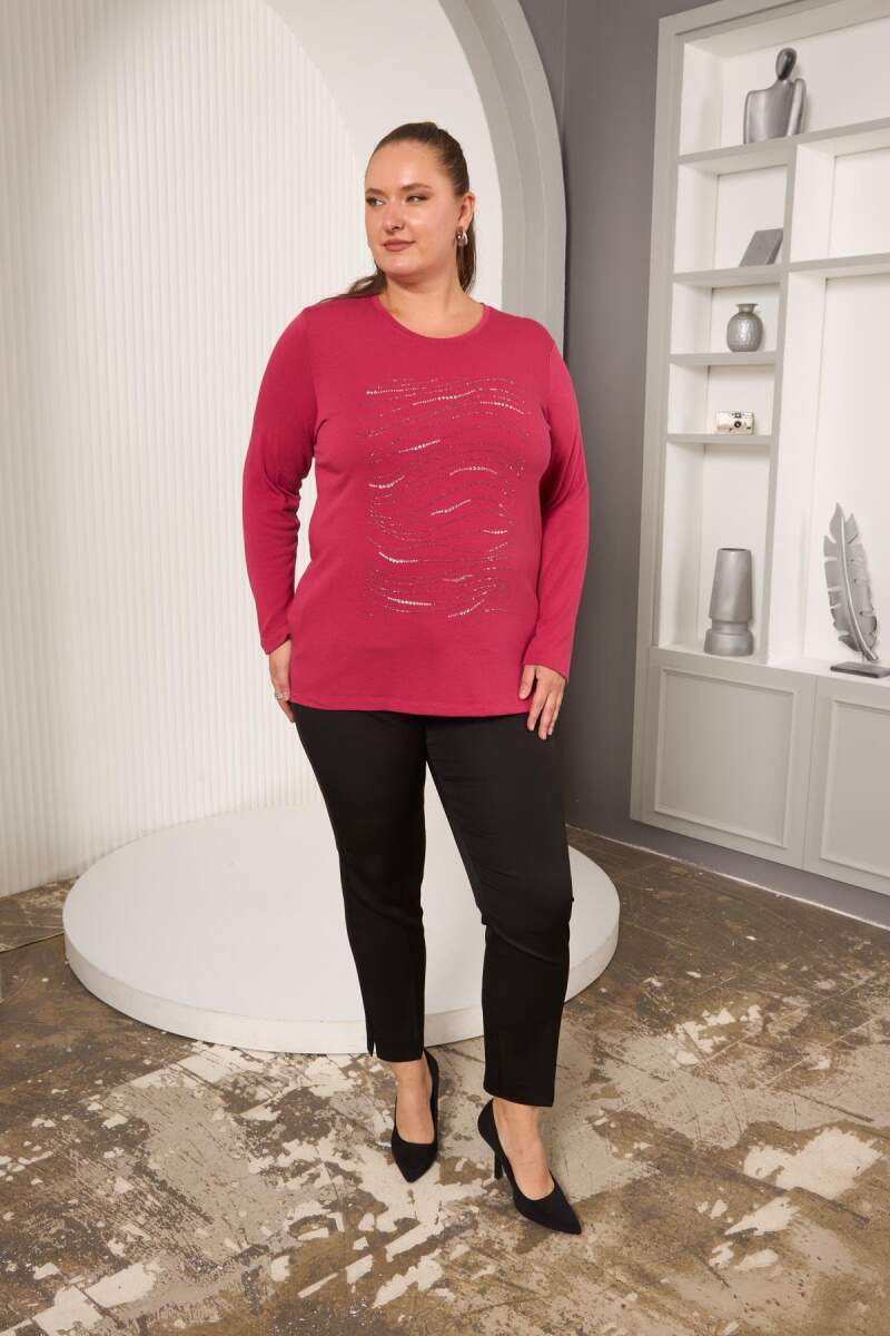 Büyük Beden Taş Detay Bluz Violet