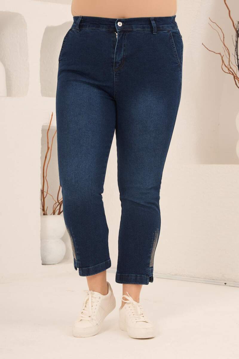 Şıklığı ve Rahatlığı Bir Arada Sunan Büyük Beden Taş Detay Denim Kapri