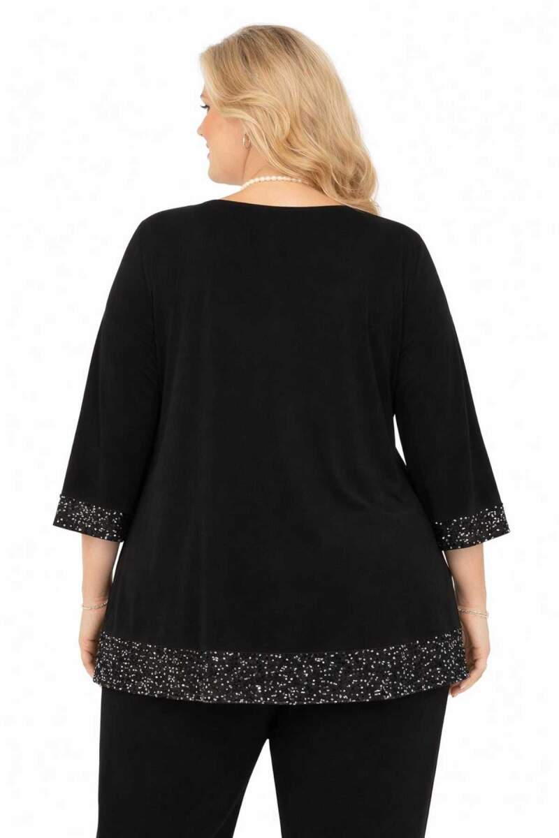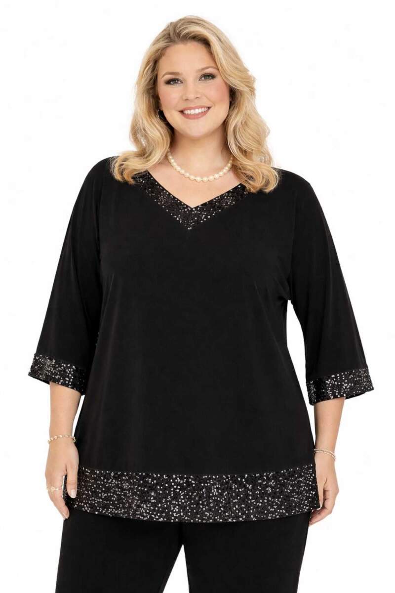 Büyük beden kadınlar için özel olarak tasarlanan V yaka payet detaylı uzun abiye tunik, şıklık ve rahatlığı bir arada sunar. Kol ve etek uçlarında yer alan zarif payet detayları, ürüne göz alıcı bir ışıltı katarken, V yaka kesimi boyun hattını daha uzun ve zarif gösterir.
