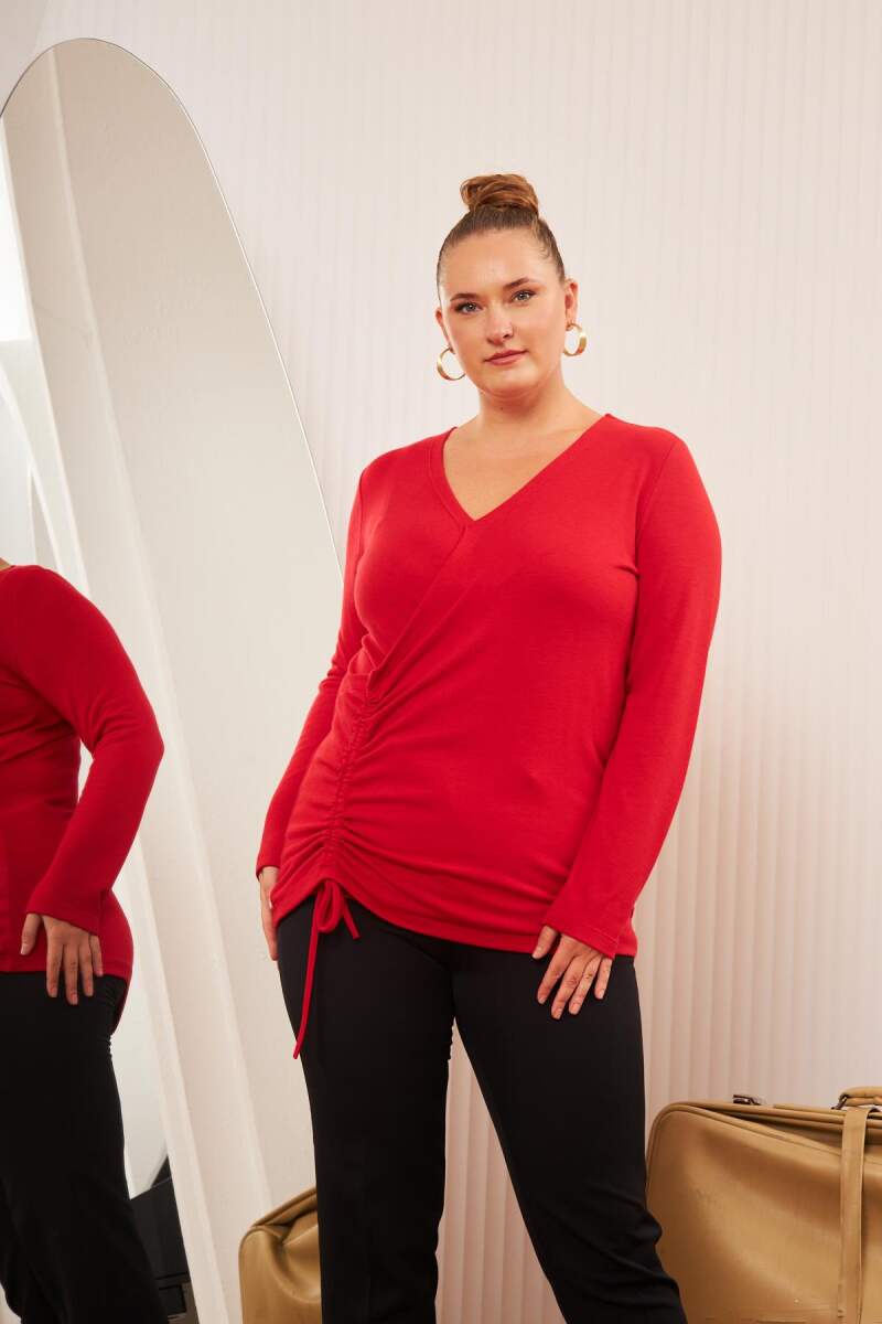Uzun Kol, Önü Büzgü Detaylı Örme Bluz
