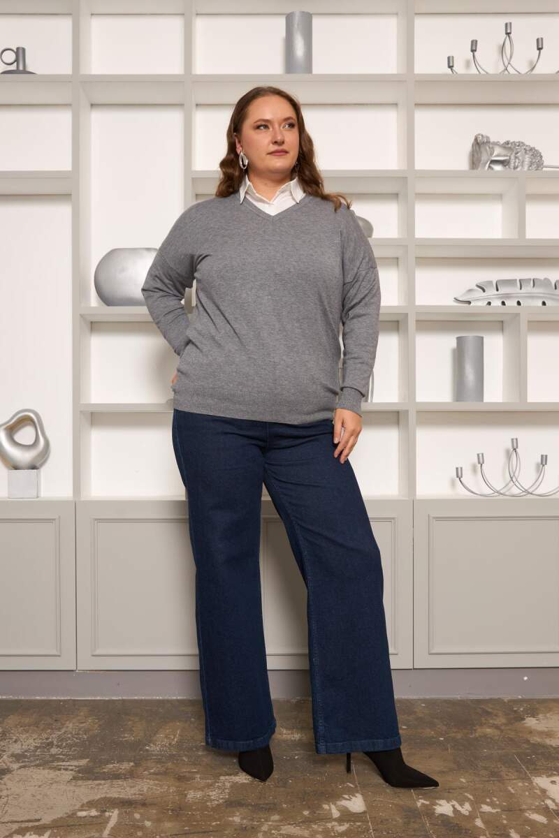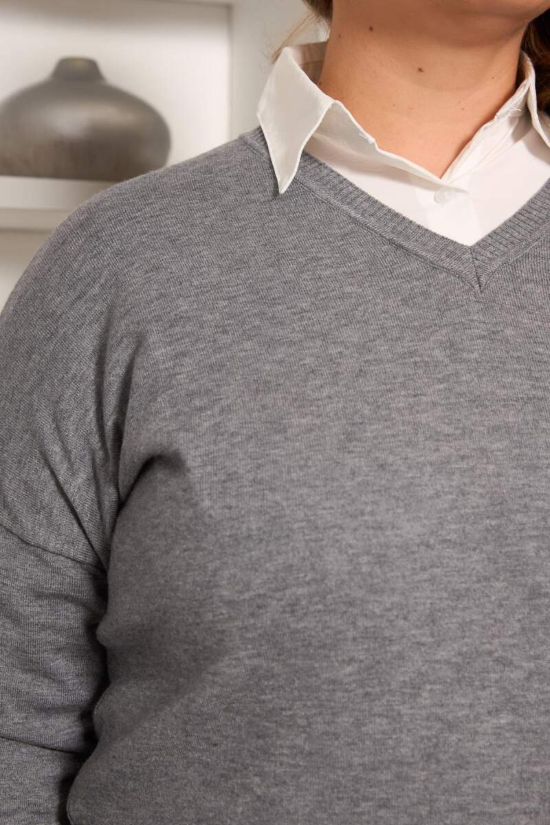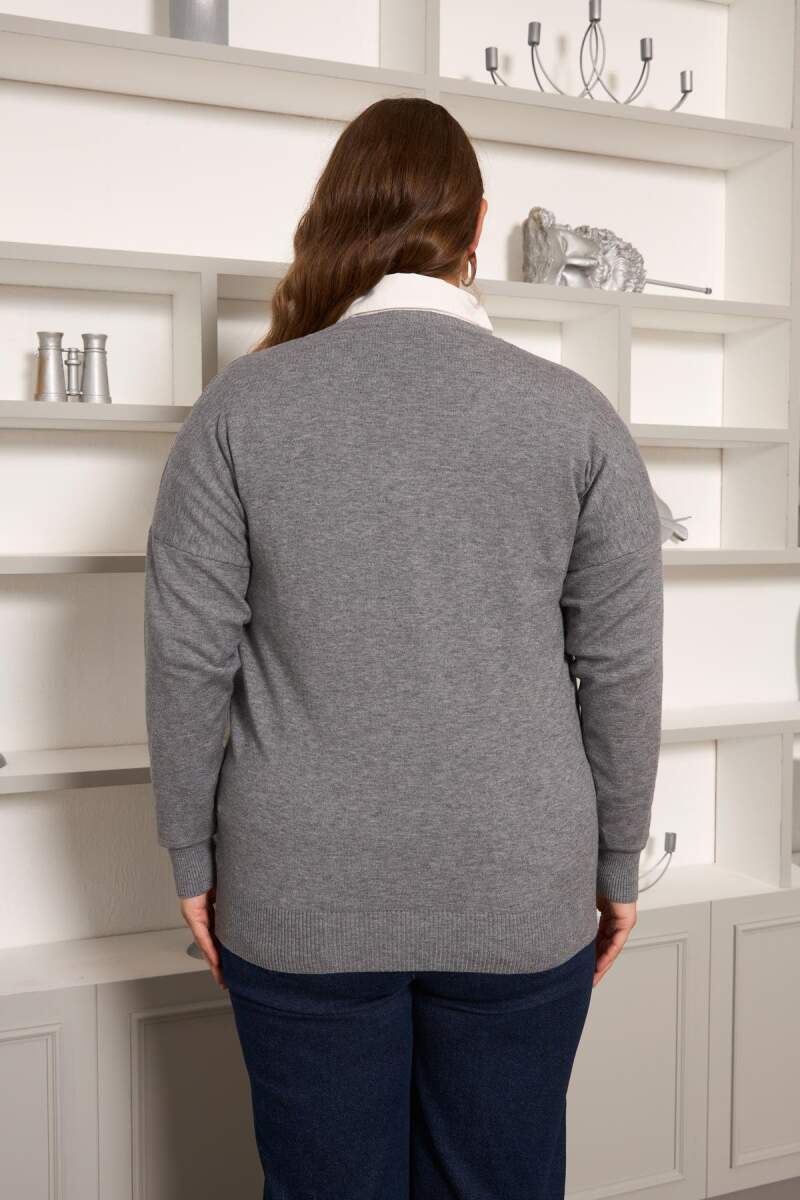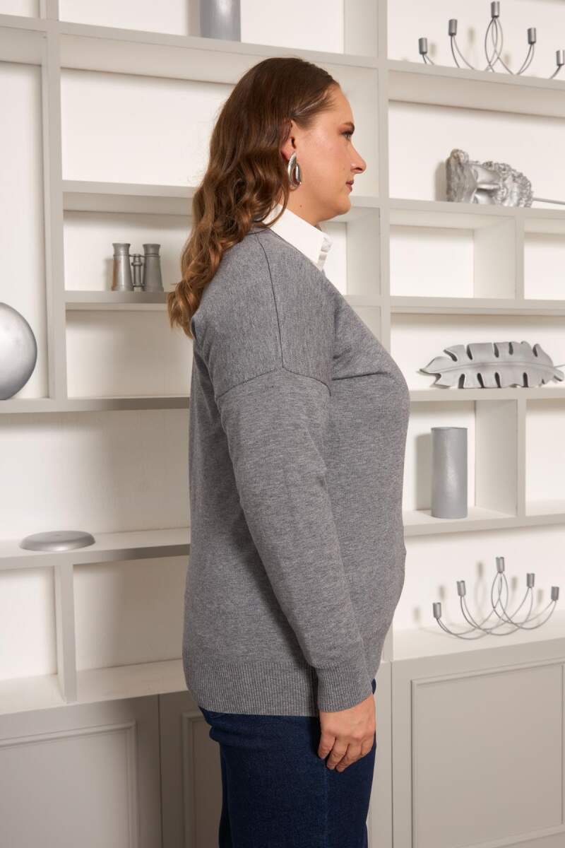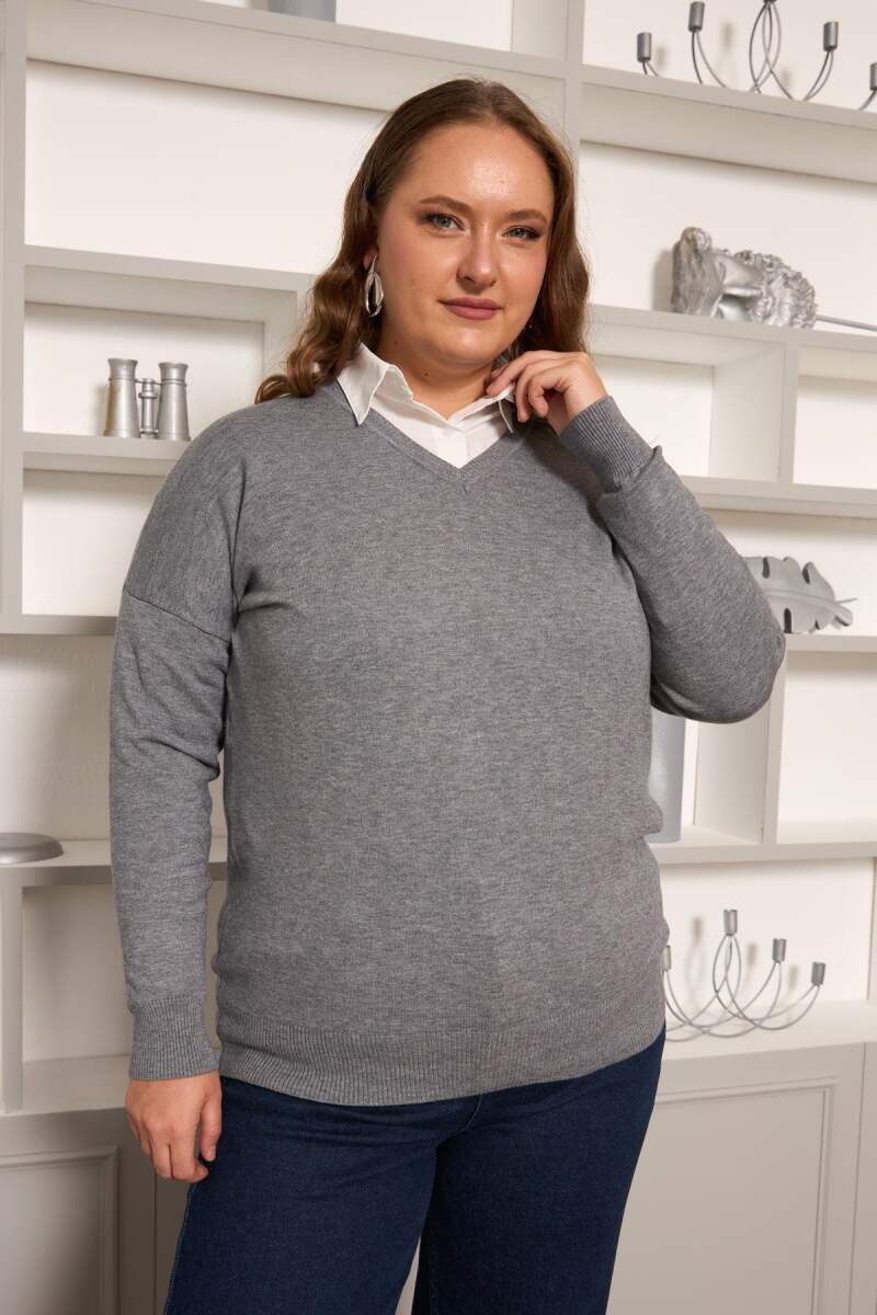 Büyük Beden V Yaka Triko Kazak Antrasit