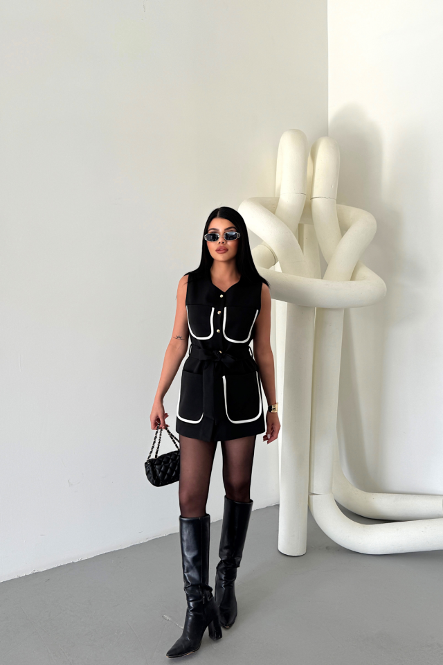 BÜYÜK CEP BİYE DETAYLIYELEK - Siyah