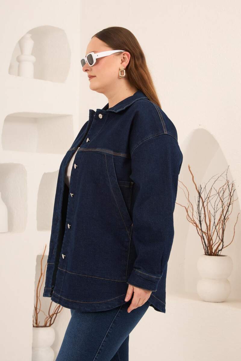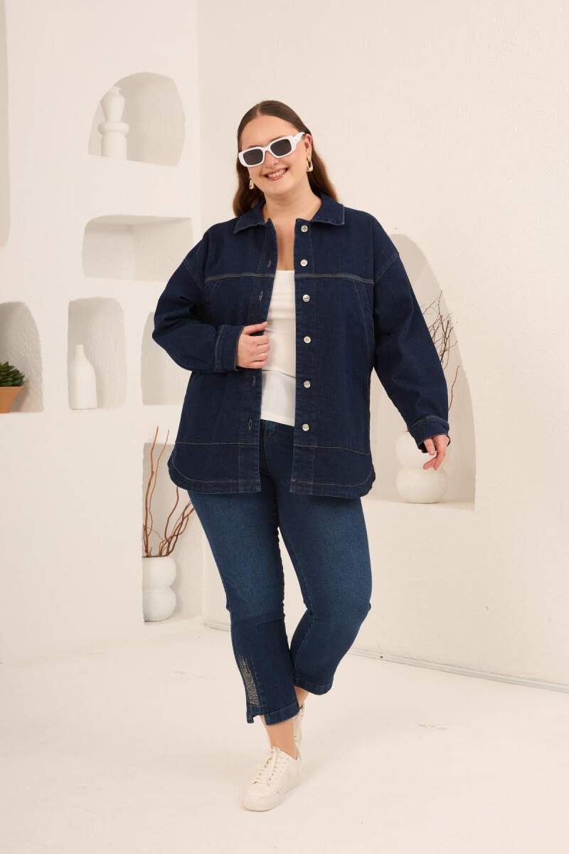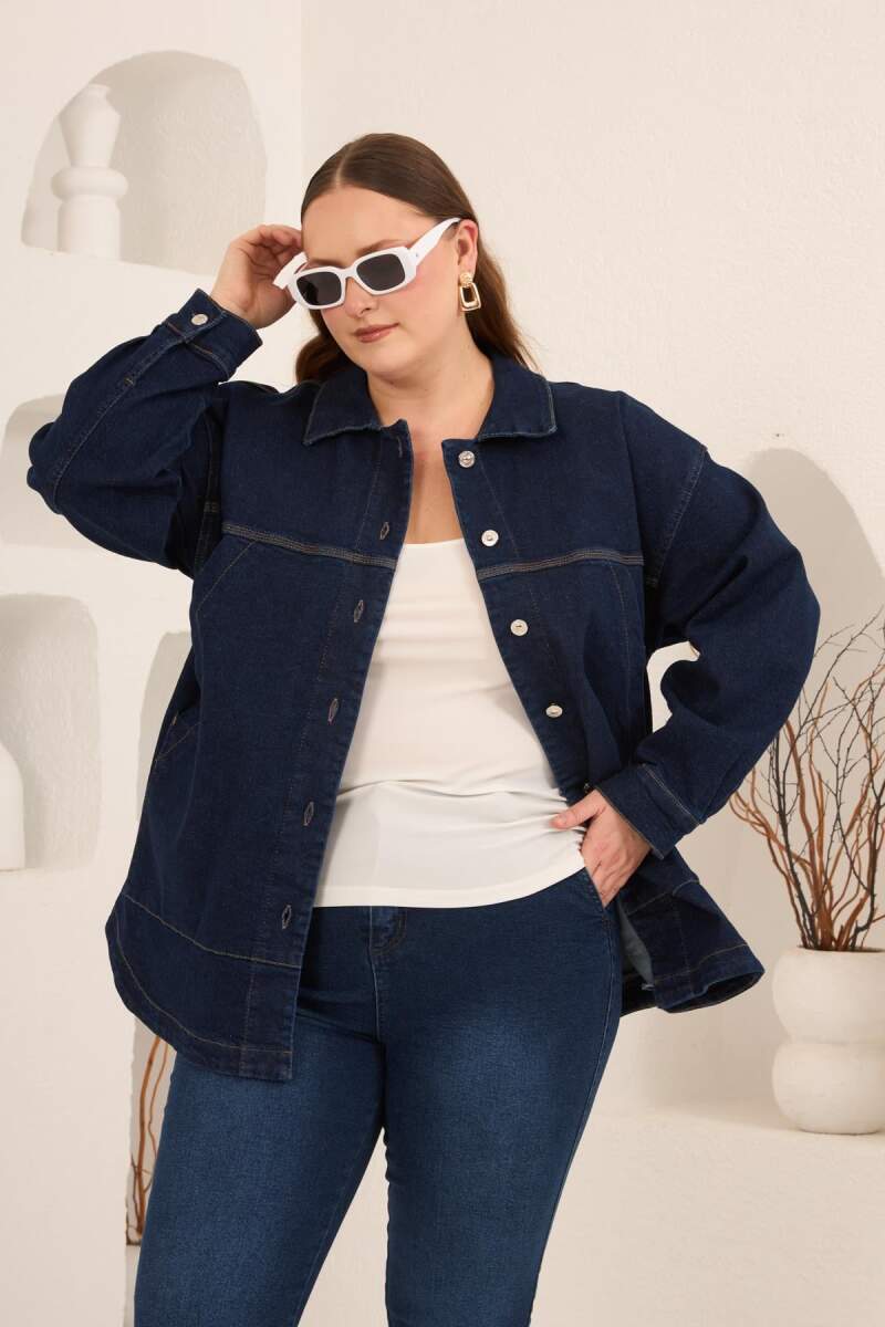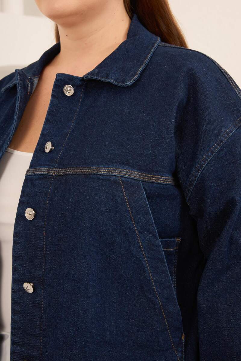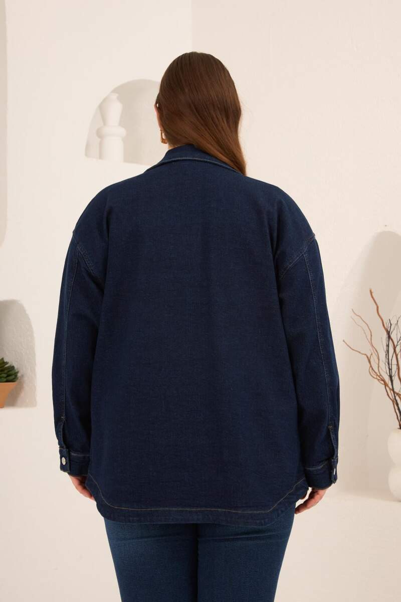 Cep Detaylı Büyük Beden Kadın Kot Ceket Lacivert