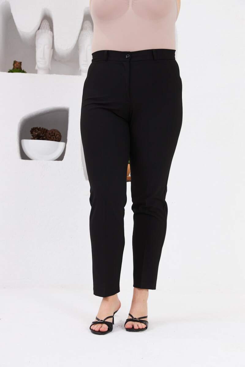 Cep Detaylı Büyük Beden Kumaş Pantolon Siyah
