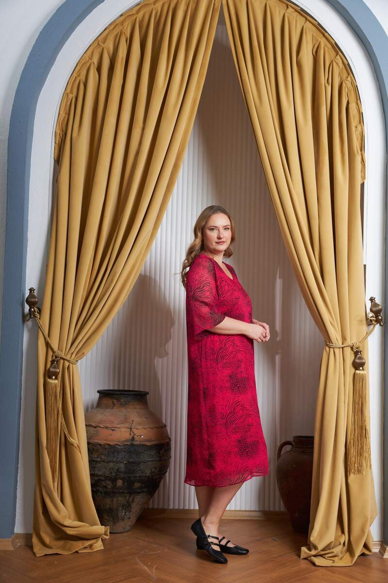 Model Bilgileri: Boy:1,78 - Göğüs:103 - Bel:89 - Basen:110