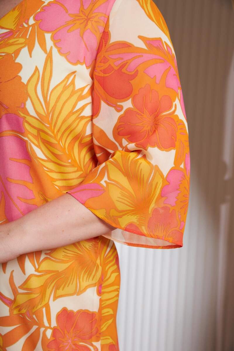 Canlı turuncu rengi ve zarif çiçek desenleriyle dikkat çeken RMG V yaka büyük beden günlük elbise, şıklığı ve rahatlığı bir arada sunar. Hafif kumaşı ve modern kesimiyle gün boyu konfor sağlar.