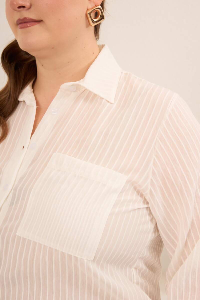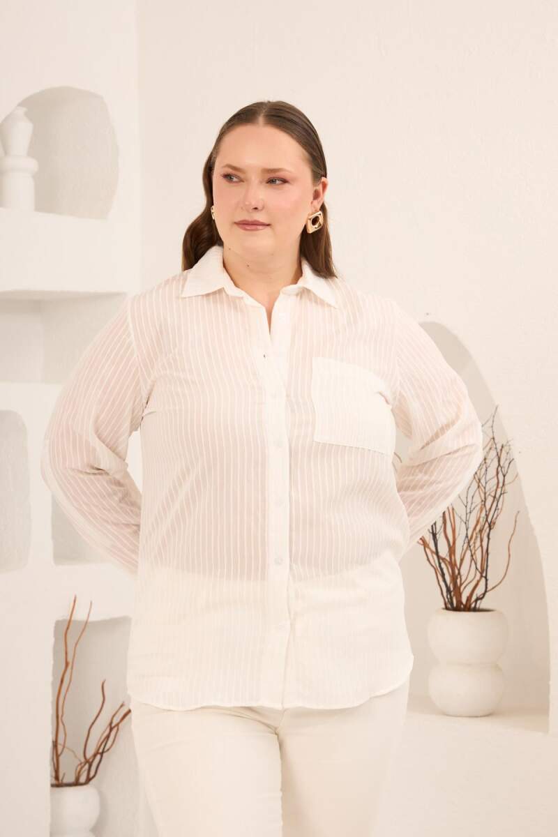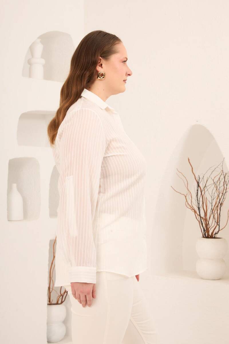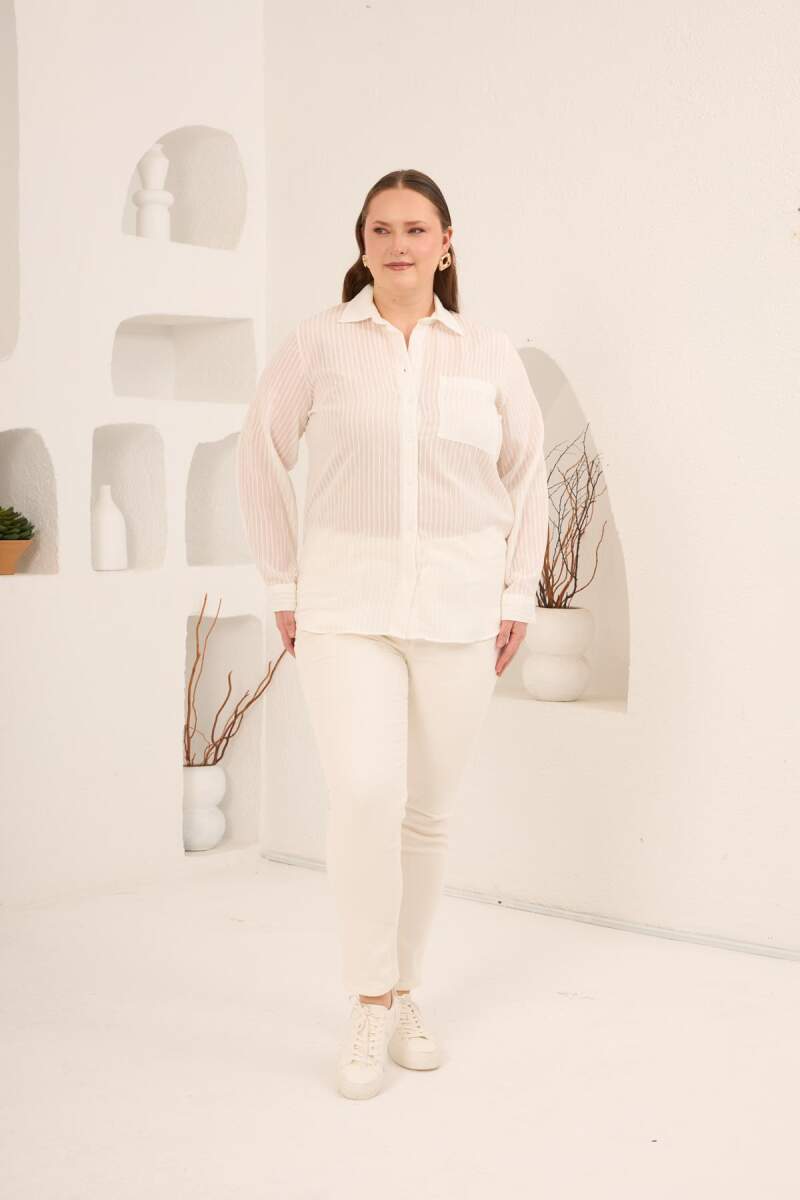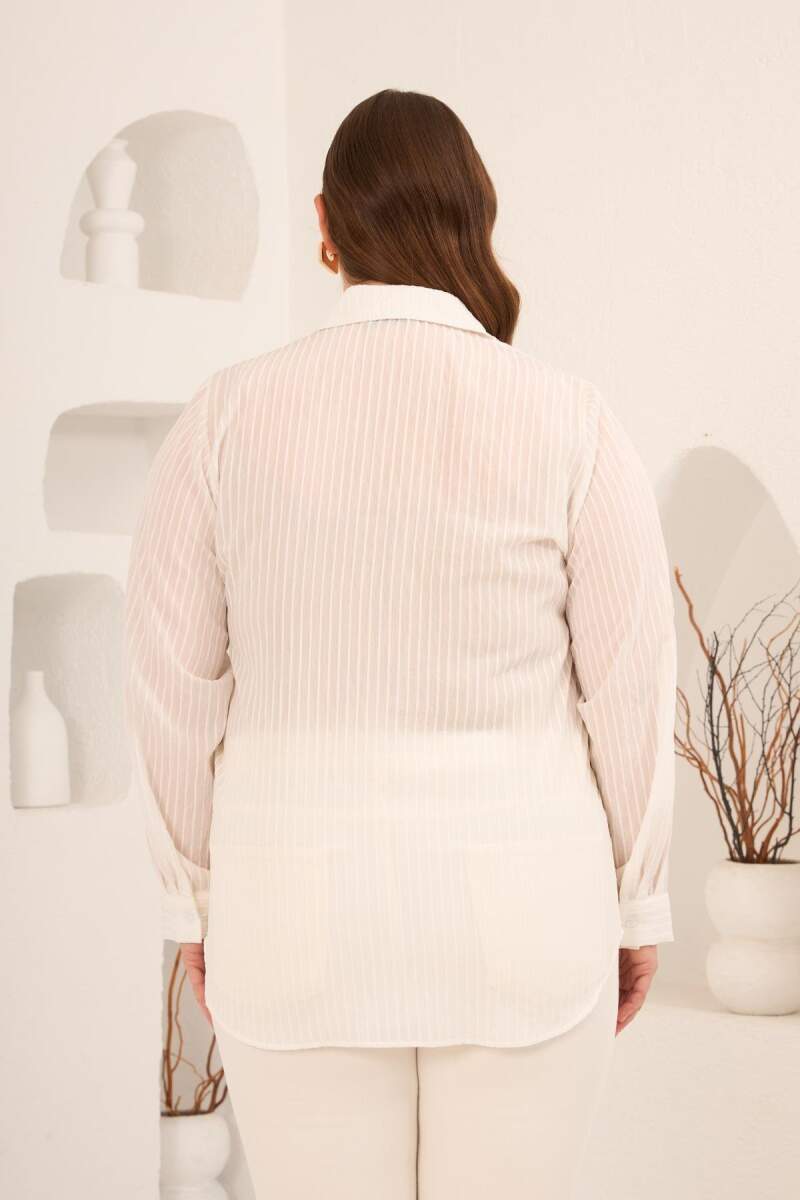 Çizgili Büyük Beden Gömlek Ekru