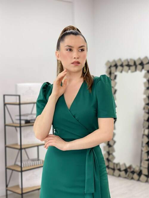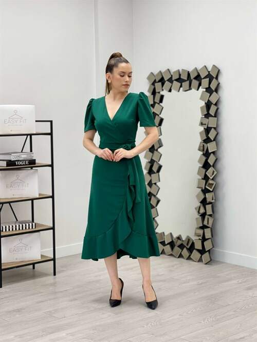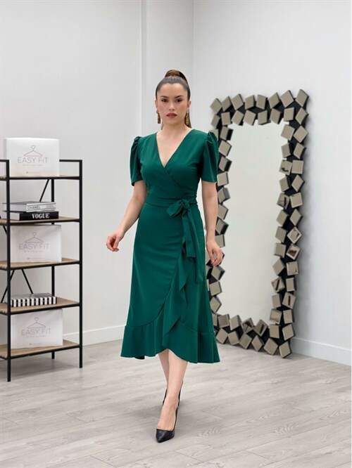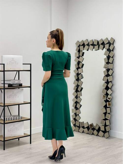 Crep Kumaş Midi Elbise - ZÜMRÜT YEŞİL