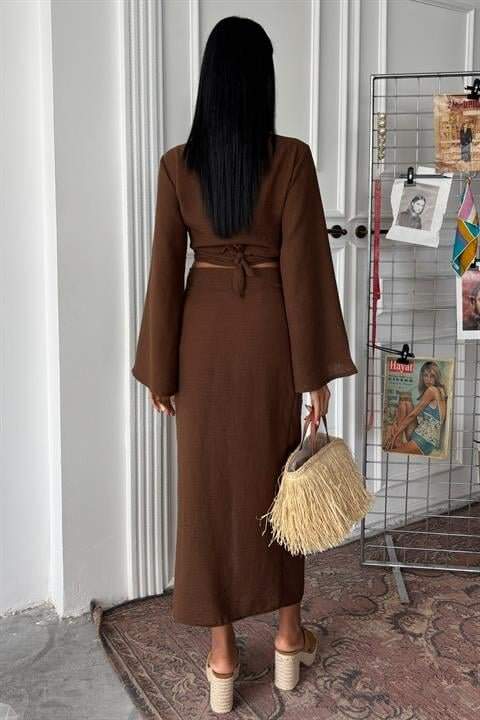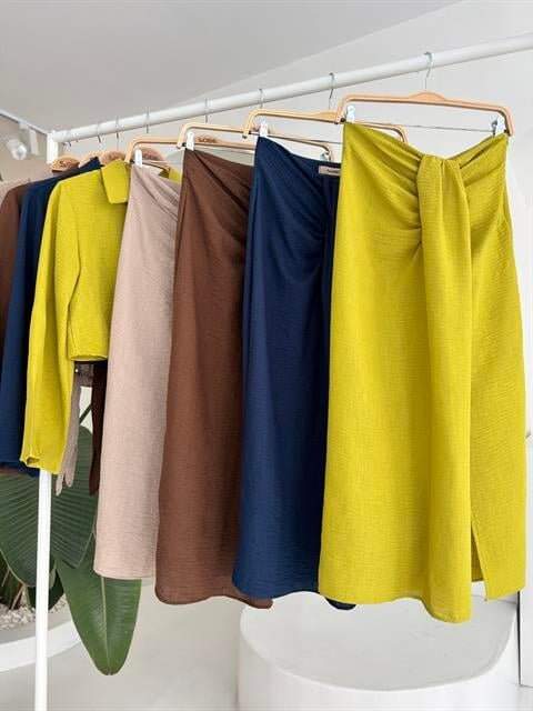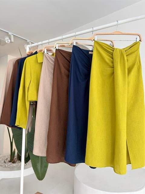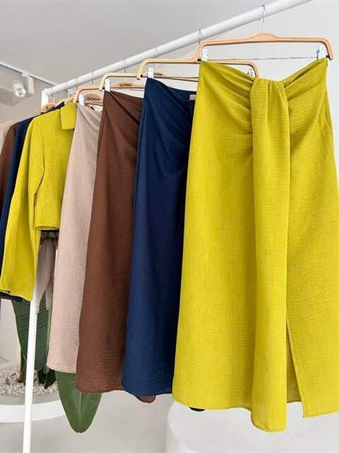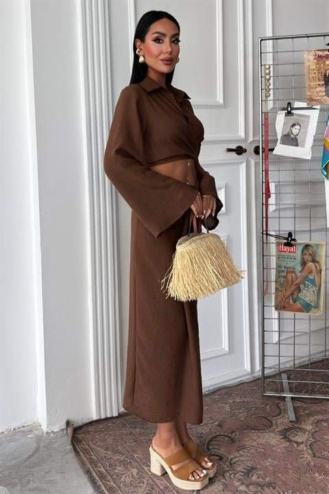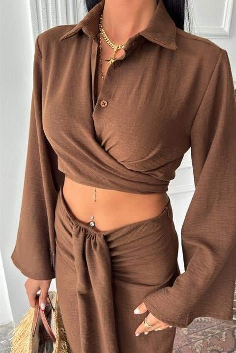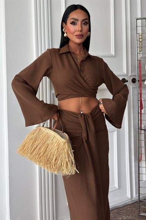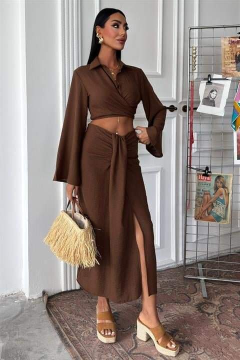 Crop Gömlekli Ve Eteği Büzgülü Tasarım Takım 10195
