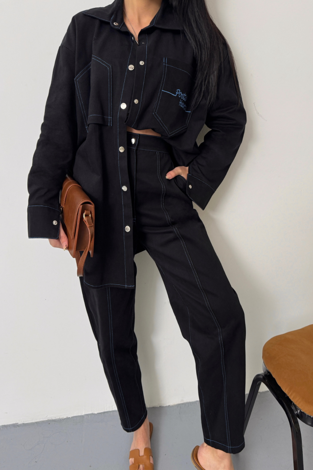 DENİM PUNTOLU GÖMLEK-PANTOLON TAKIM - Mavi