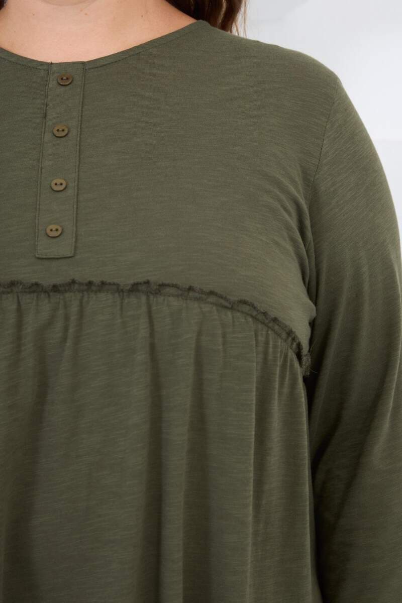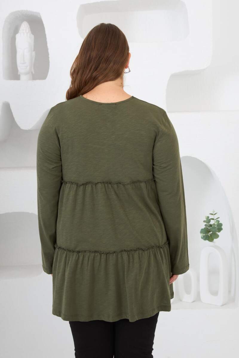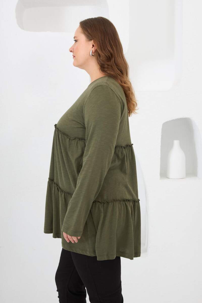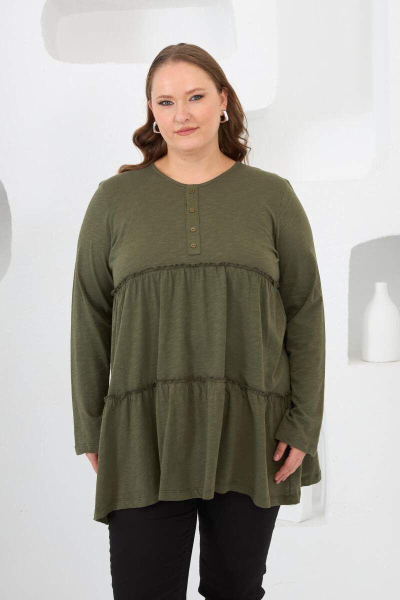 Düğme Detaylı Fırfırlı Büyük Beden Tunik Haki