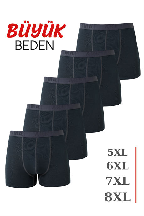 Erkek Füme Büyük Beden Boxer Pamuklu Likralı Yumuşak ve Esnek Kumaş 5'li Paket