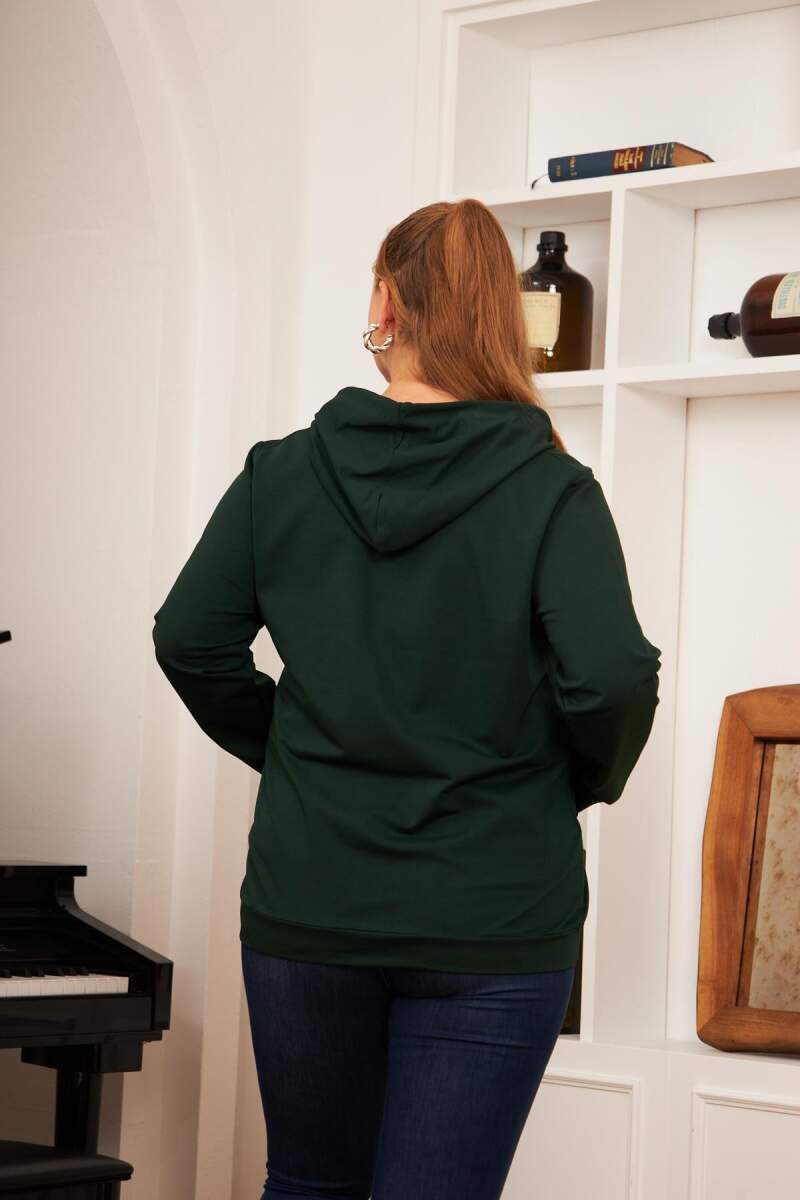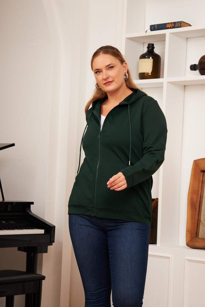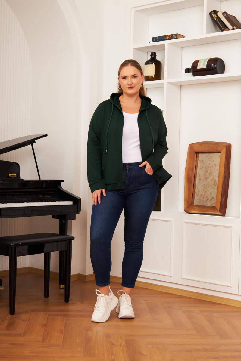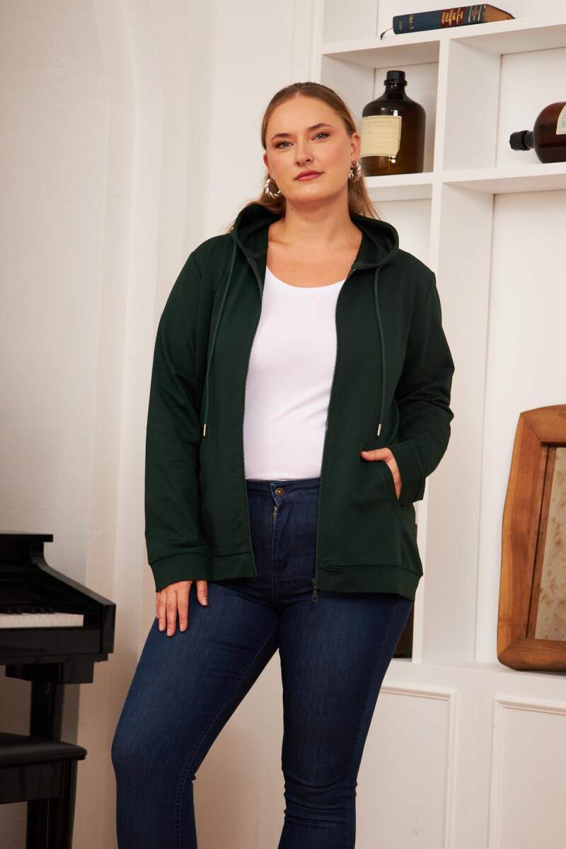 Fermuar Detaylı Büyük Beden Eşofman Üst Zümrüt