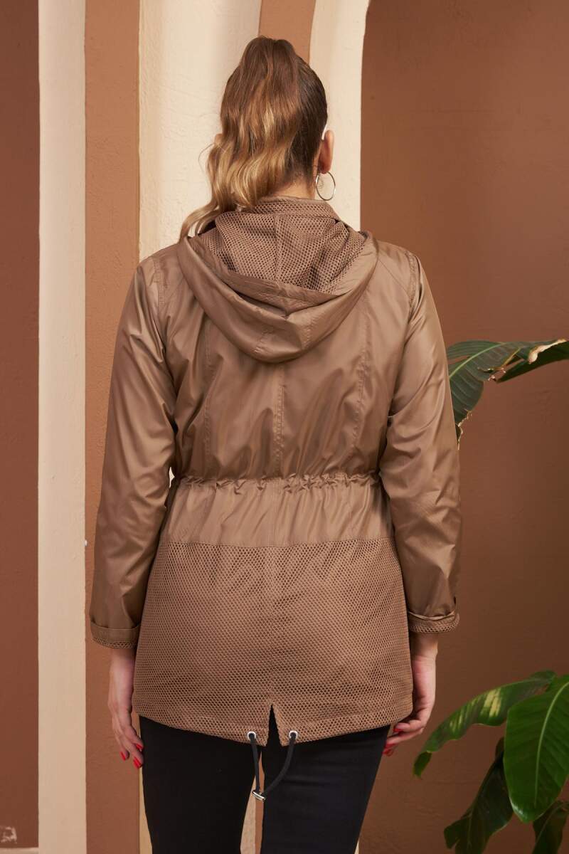 File Detaylı Büyük Beden Vizon Trençkot