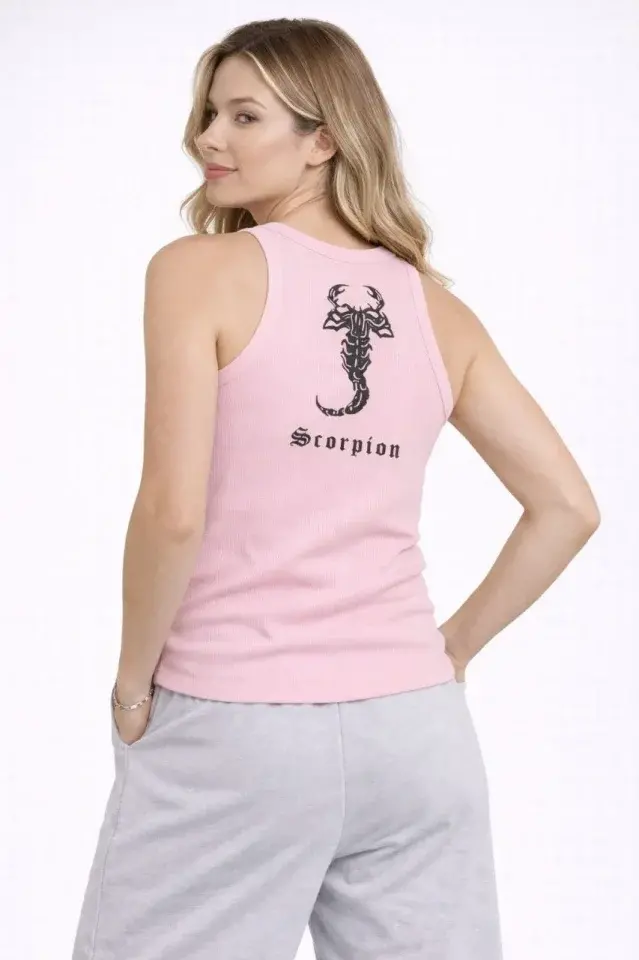 Fitilli Atlet Sıfır Yaka Slim Fit Arka Baskılı Spor Atlet - Pembe