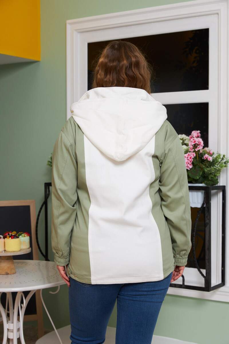 Şıklığı ve konforu bir arada sunan garnili kapüşon detaylı büyük beden trençkot, ekru rengiyle zarif bir görünüm sağlar. Mevsim geçişlerinde stilinizi tamamlayacak bu şık trençkot, rahat kesimiyle gün boyu konfor sunar.