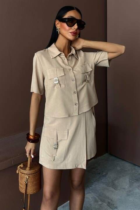 Gömlek Şort Etek Viscon Keten Takım 10162