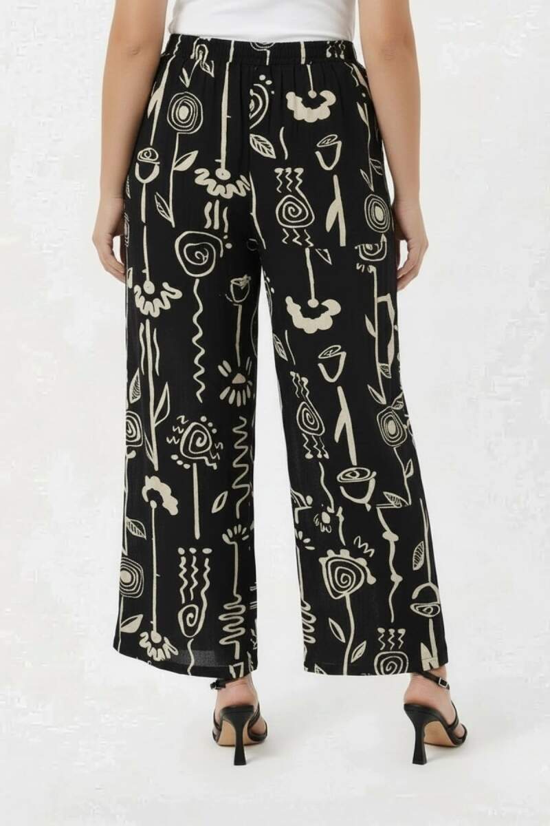 Grafik Desenli Kadın Büyük Beden Pantolon Siyah