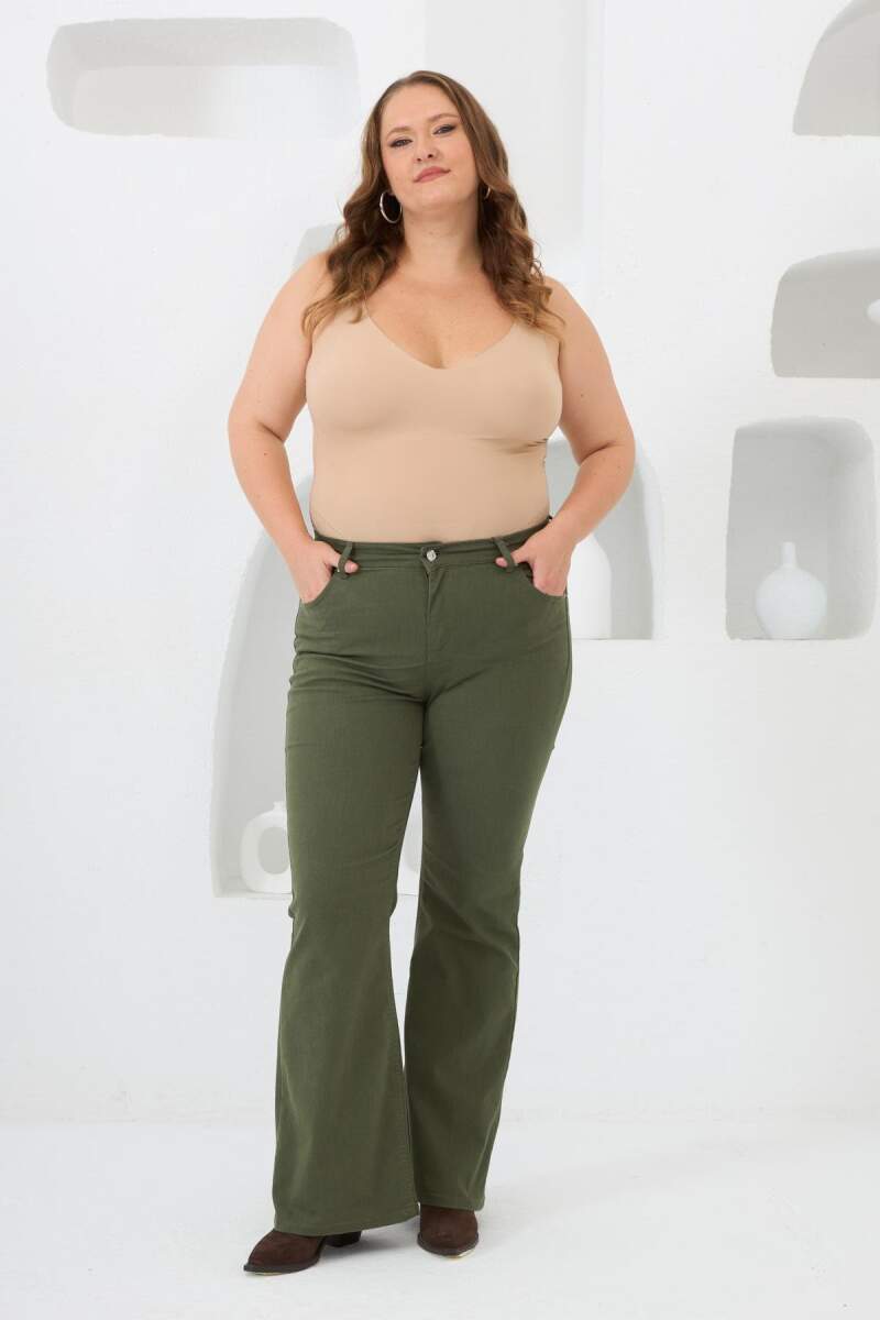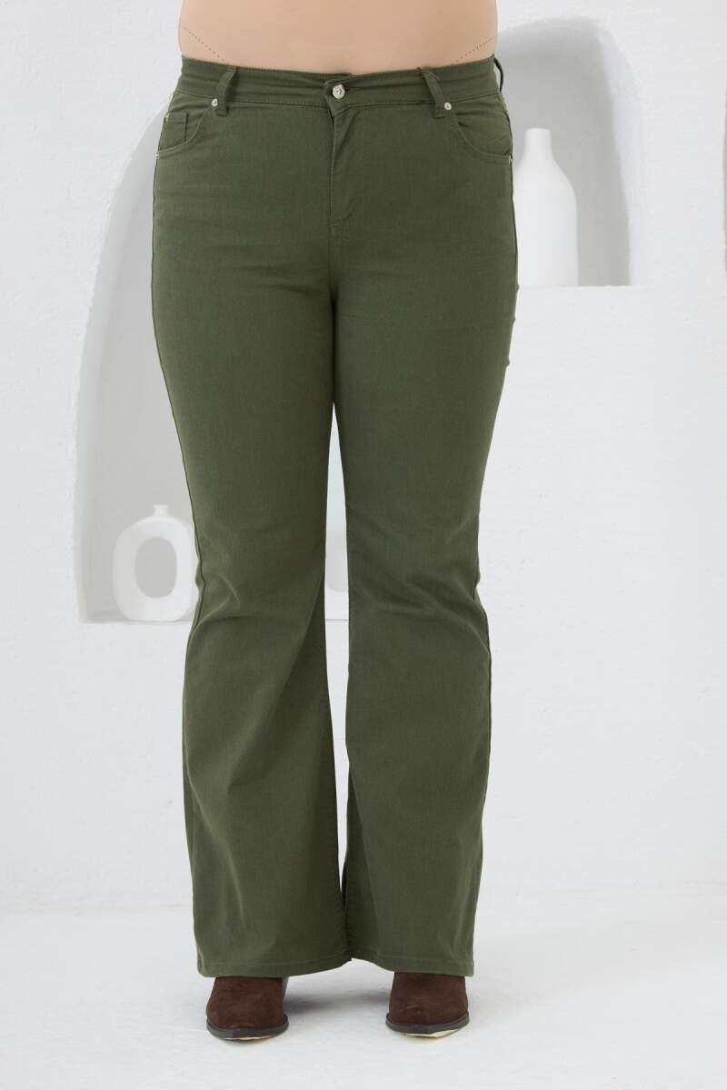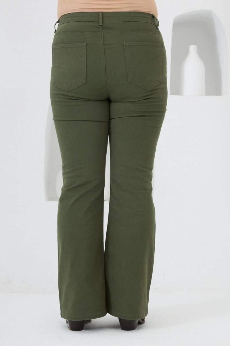 İspanyol Paça Büyük Beden Pamuk Pantolon Haki