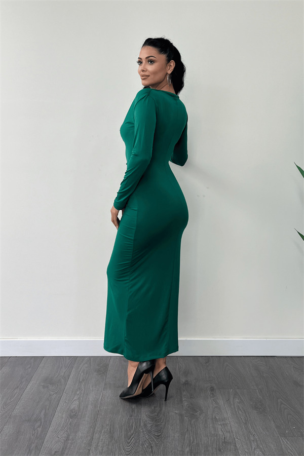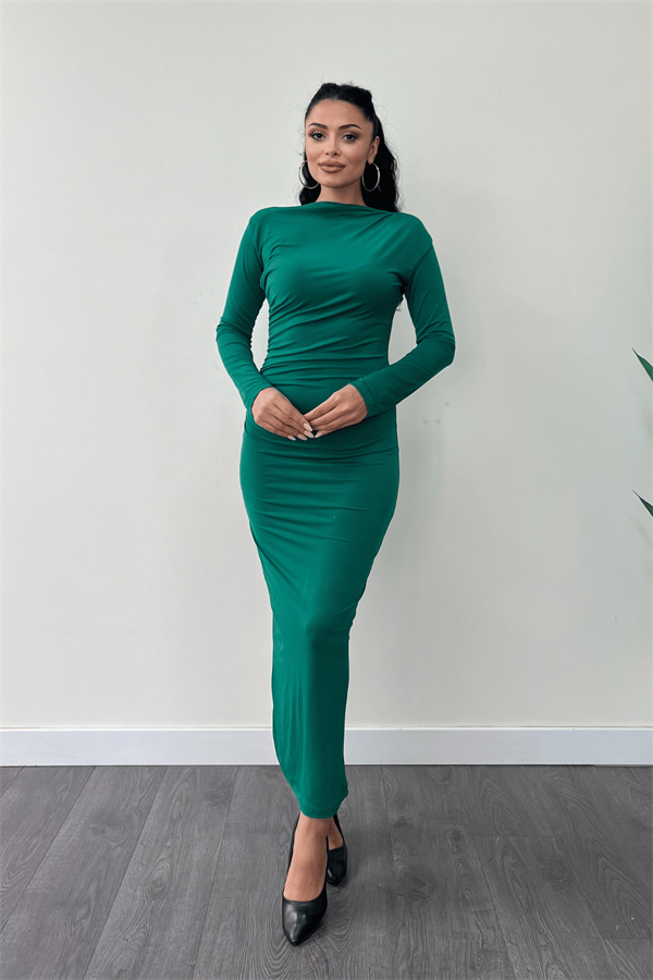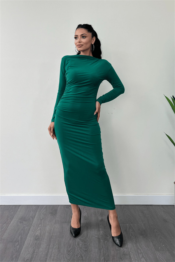Jarse Kumaş Büzgülü Kalem Elbise - ZÜMRÜT YEŞİL