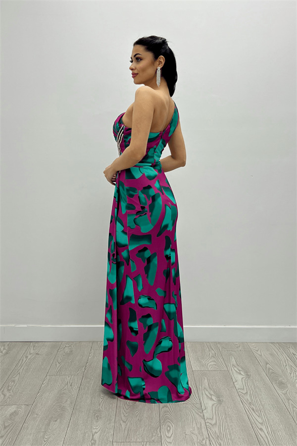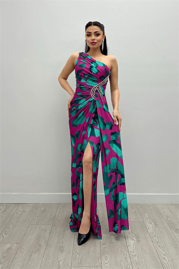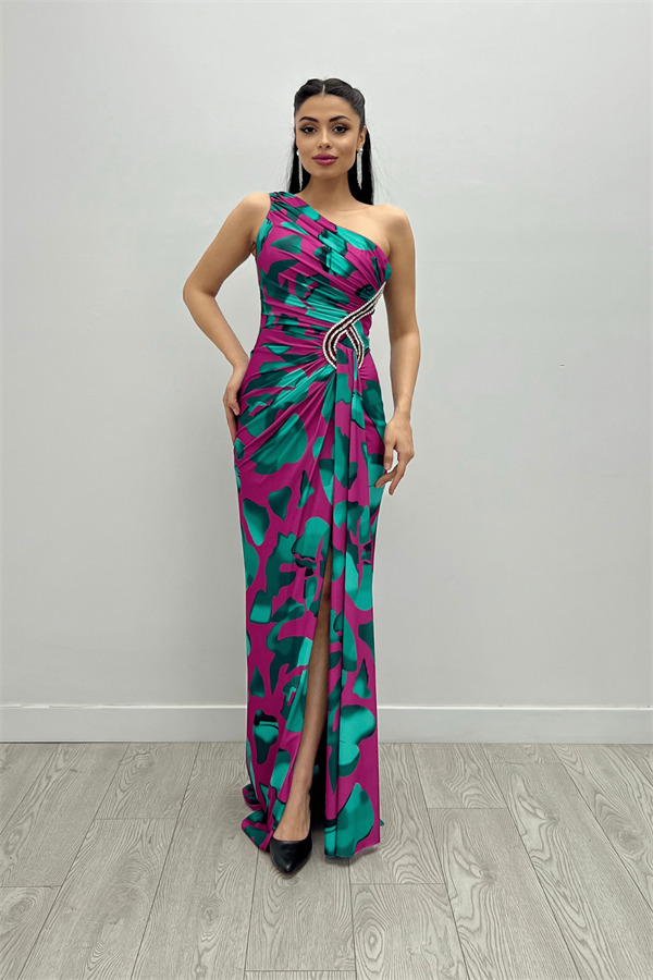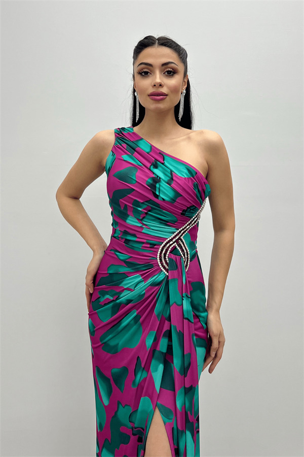 Jarse Kumaş Drapeli Taş Detaylı Balık Elbise - PEMBE