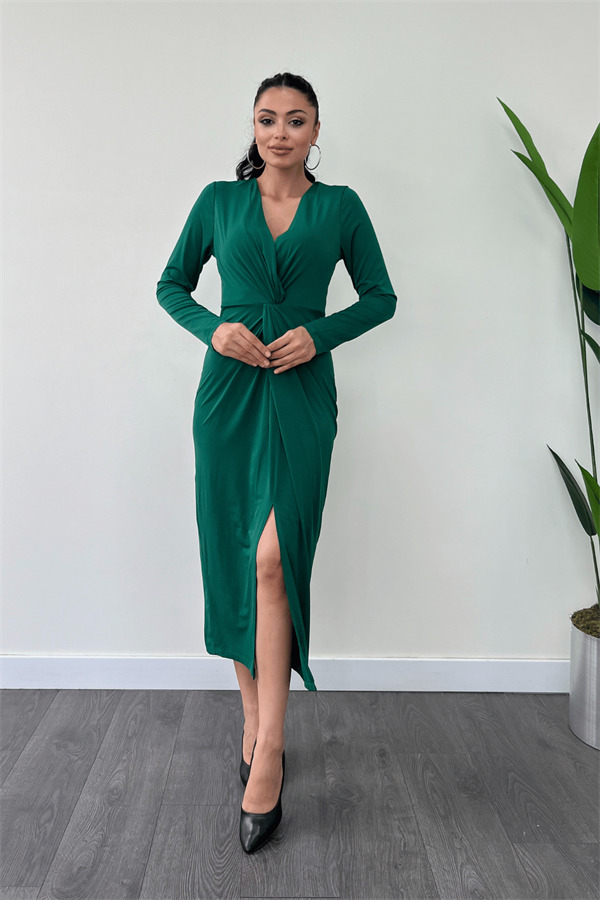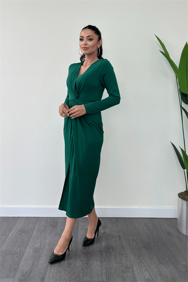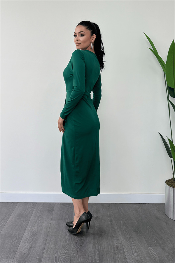 Jarse Kumaş Tasarım Kalem Elbise - ZÜMRÜT YEŞİL