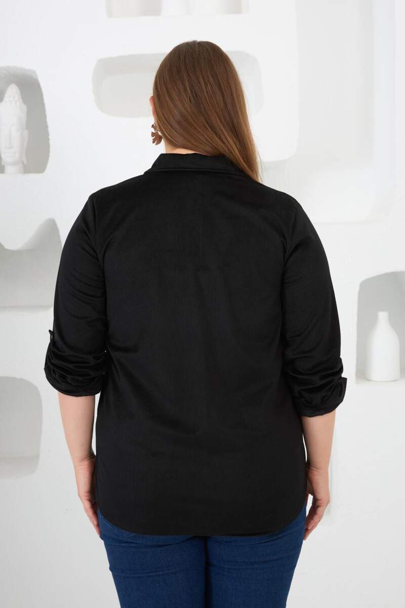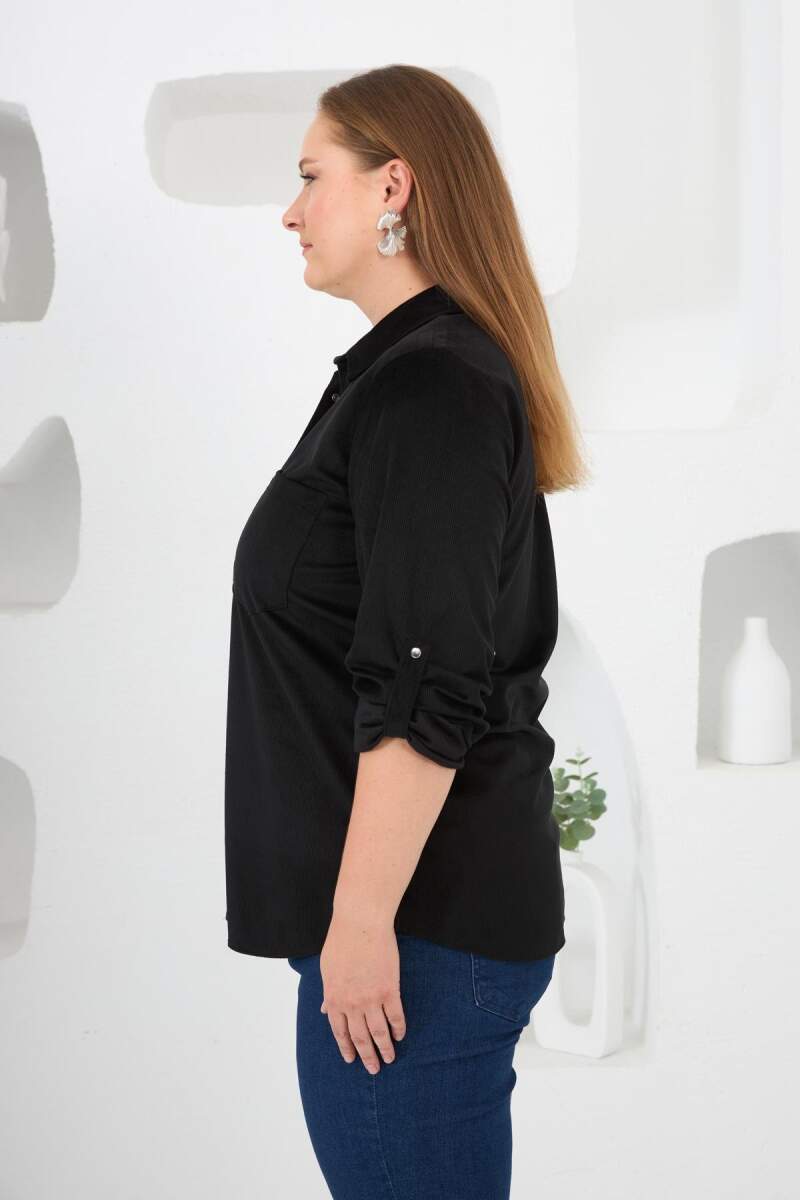 Kadife Büyük Beden Kol Çıtçıtlı Gömlek Siyah