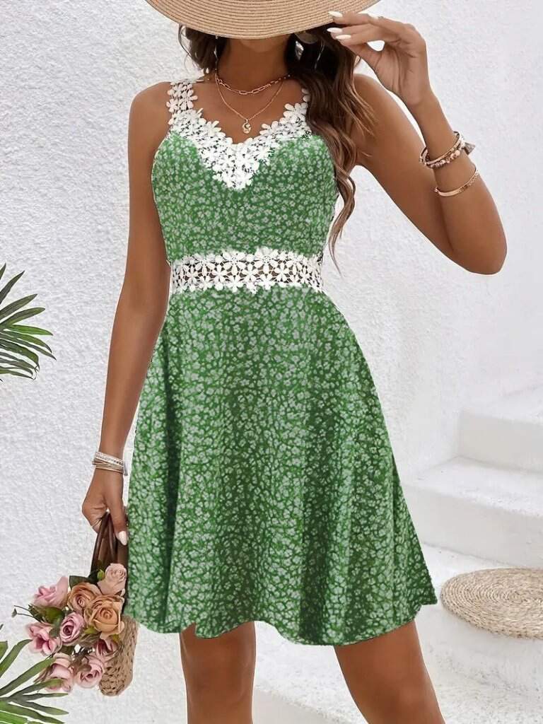 Kadın Askılı Dantel Yakalı çiçek Desenli Süprem Elbise