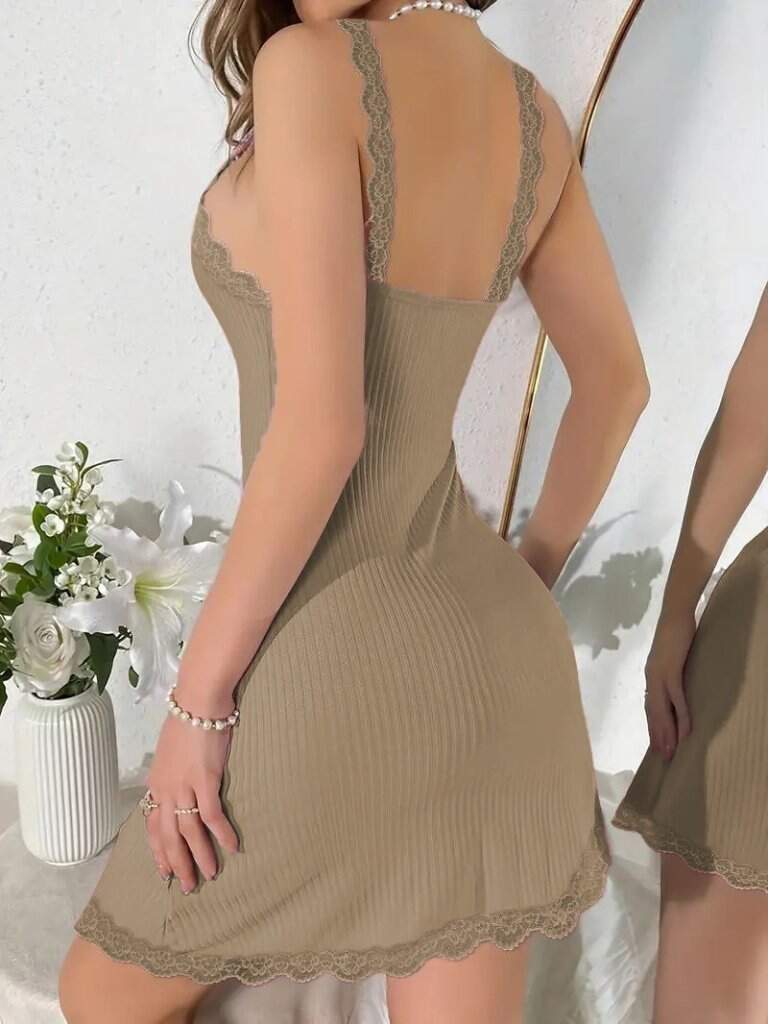 Kadın Askılı V Yaka Dantel Detay Fitilli Kaşkorse Gecelik