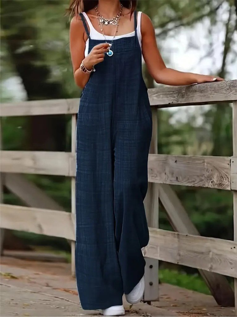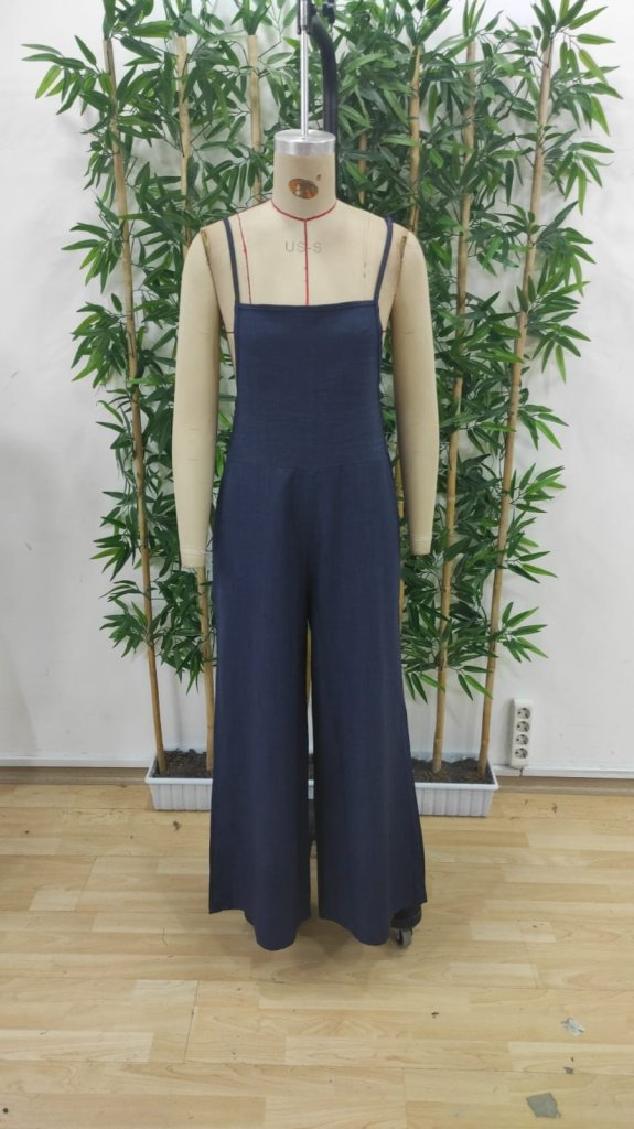 Kadın Askılı Yandan Fermuarlı Geniş Paçalı Valencia Tulum