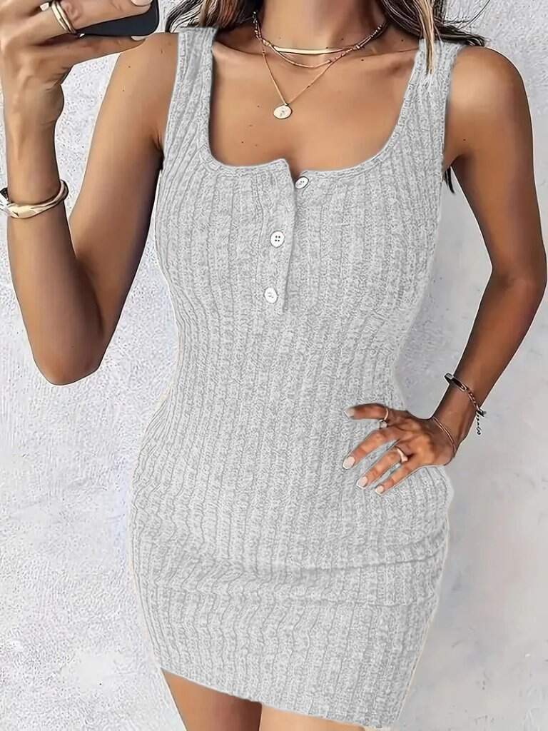 Kadın Askılı Yuvarlak Yakalı önü Düğmeli şardonlu Kaşkorse Mini Elbise Ve Kısa Ceket