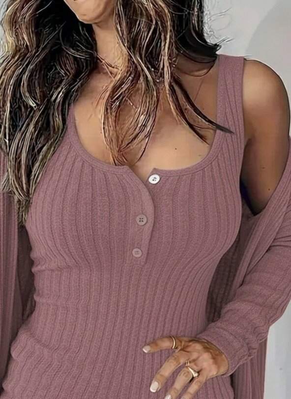 Kadın Askılı Yuvarlak Yakalı önü Düğmeli şardonlu Kaşkorse Mini Elbise Ve Kısa Ceket