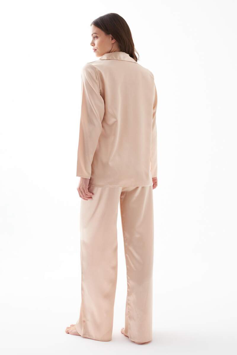 Kadın Bej Oversize Saten Pijama Takımı